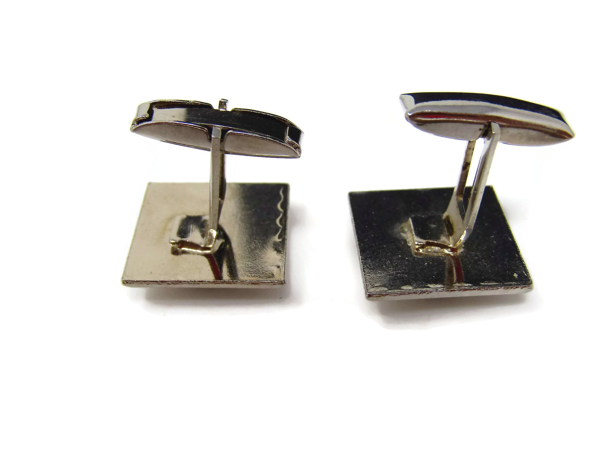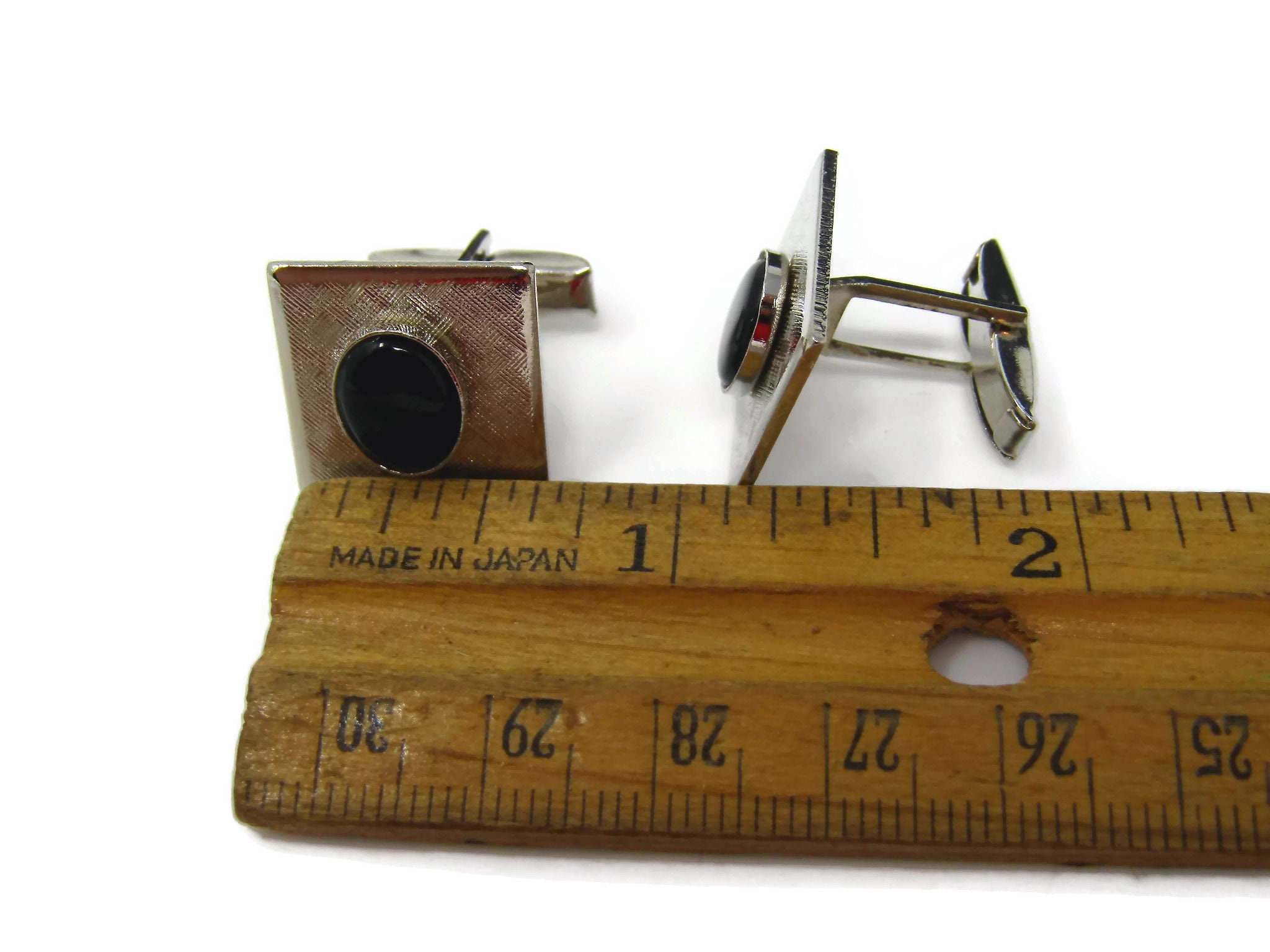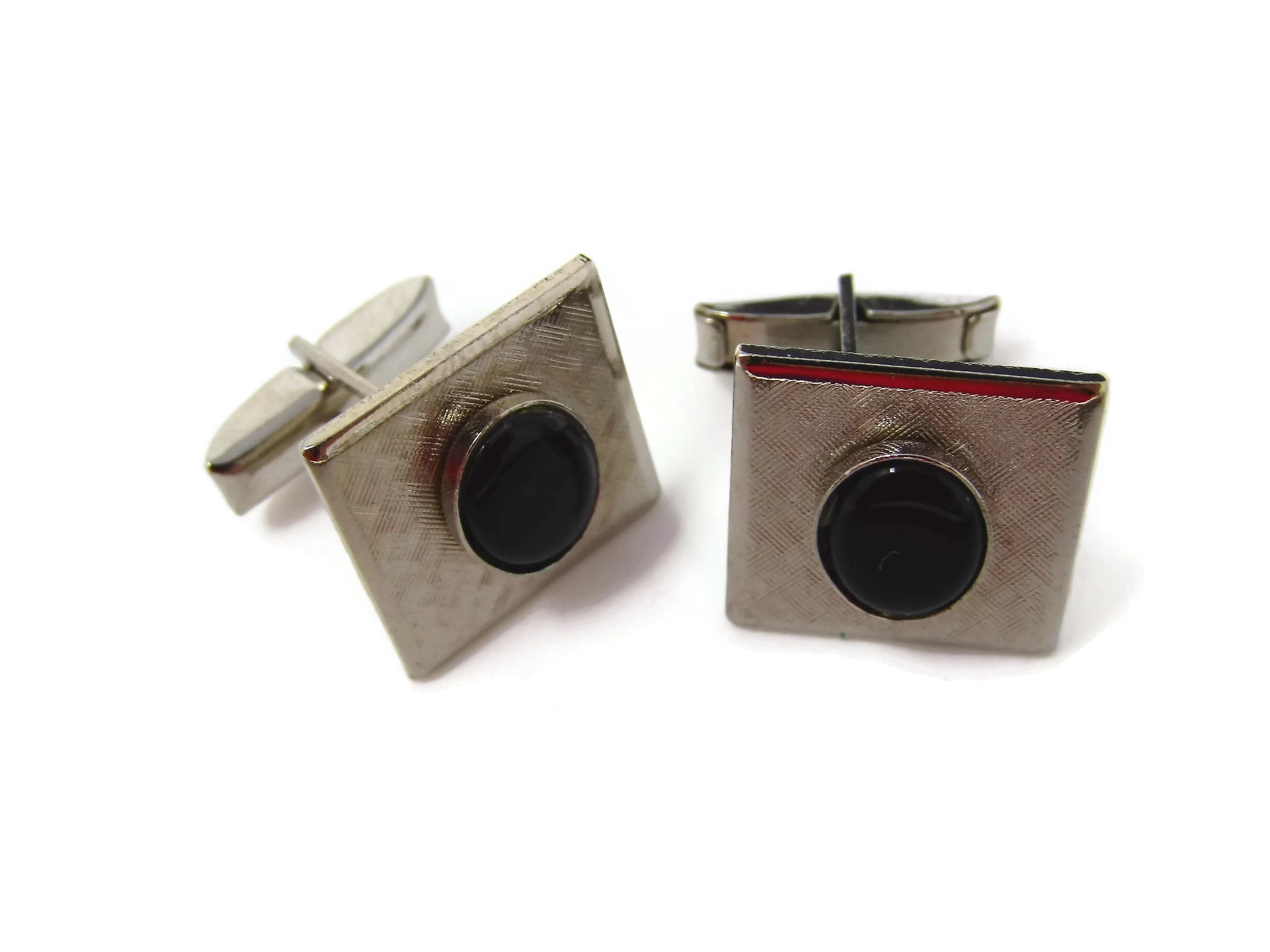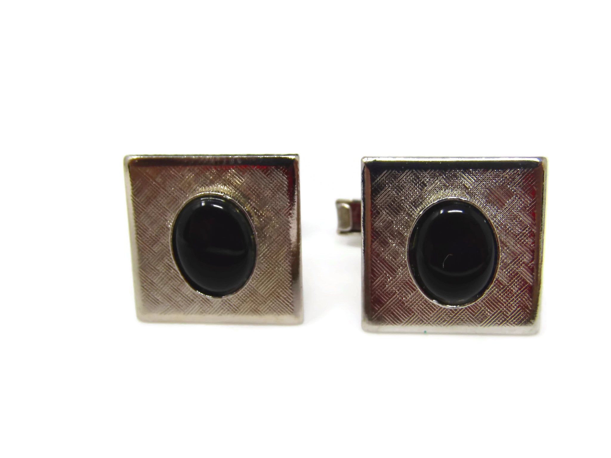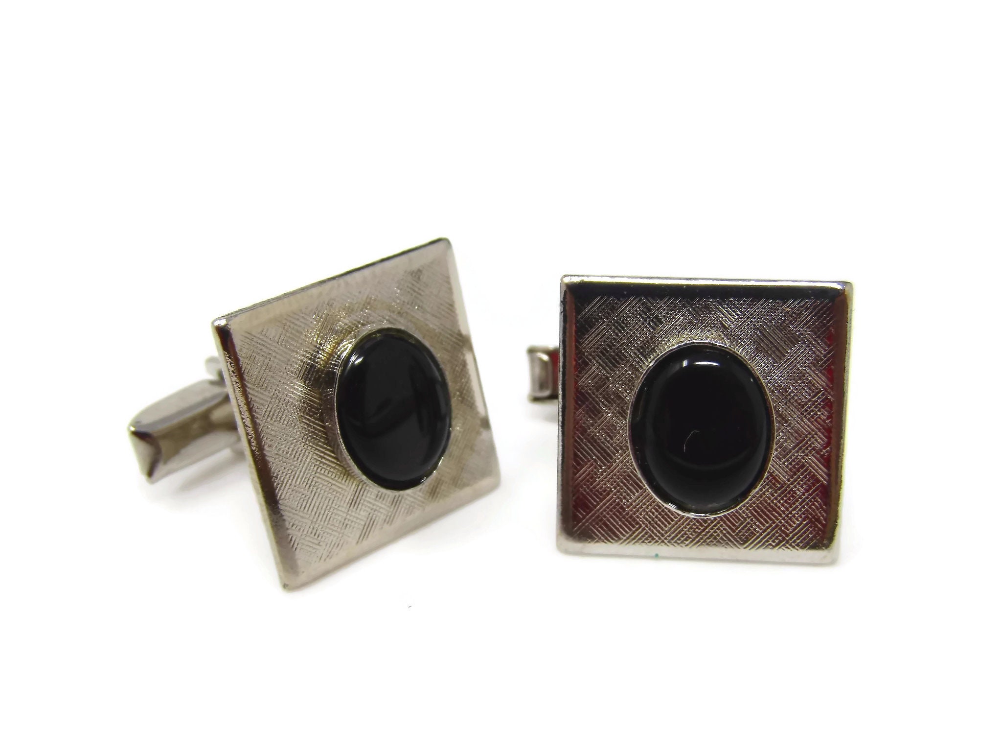 Vintage Cufflinks for Men: Textured Silver Tone Black Center Accent Nice