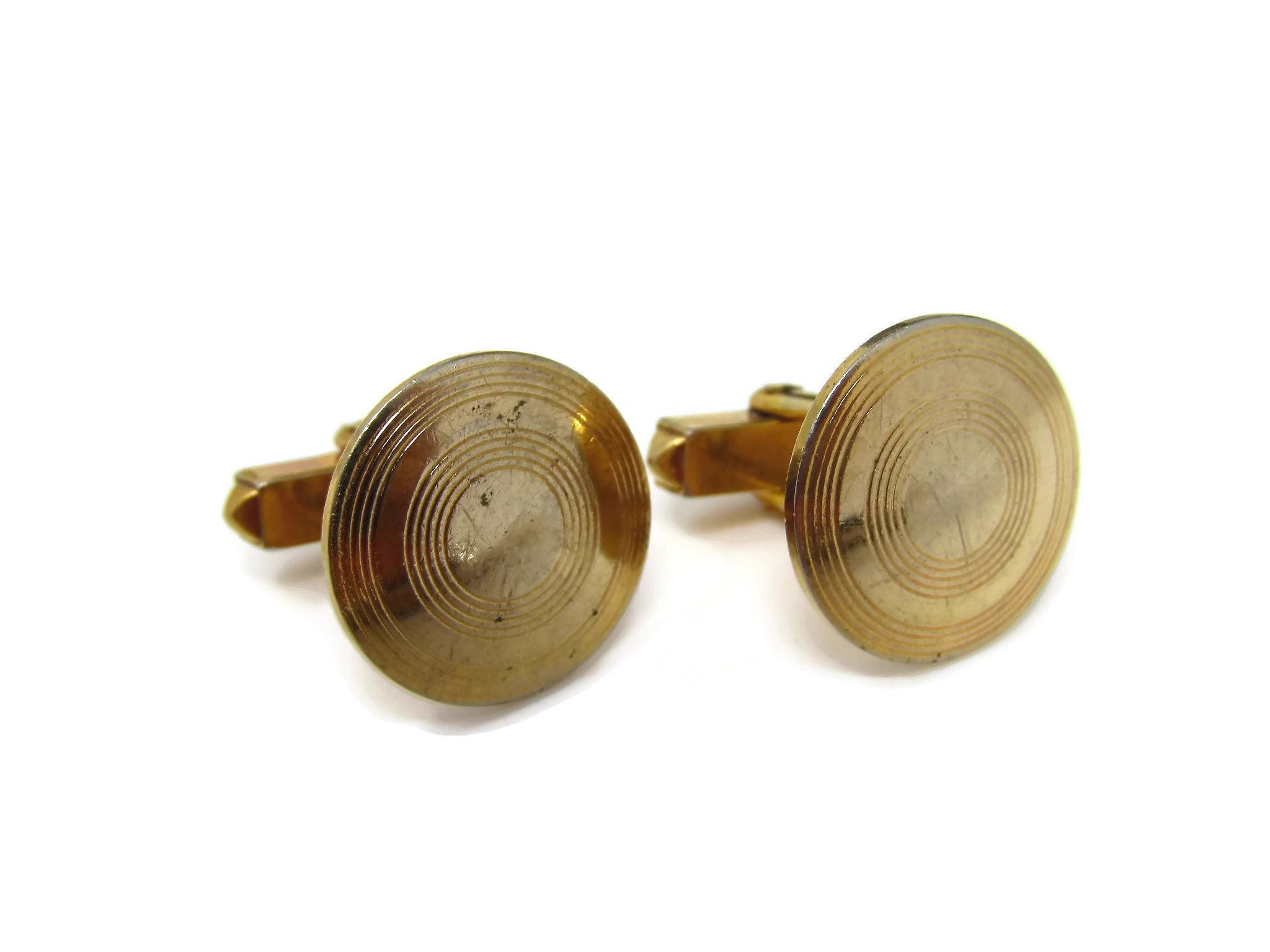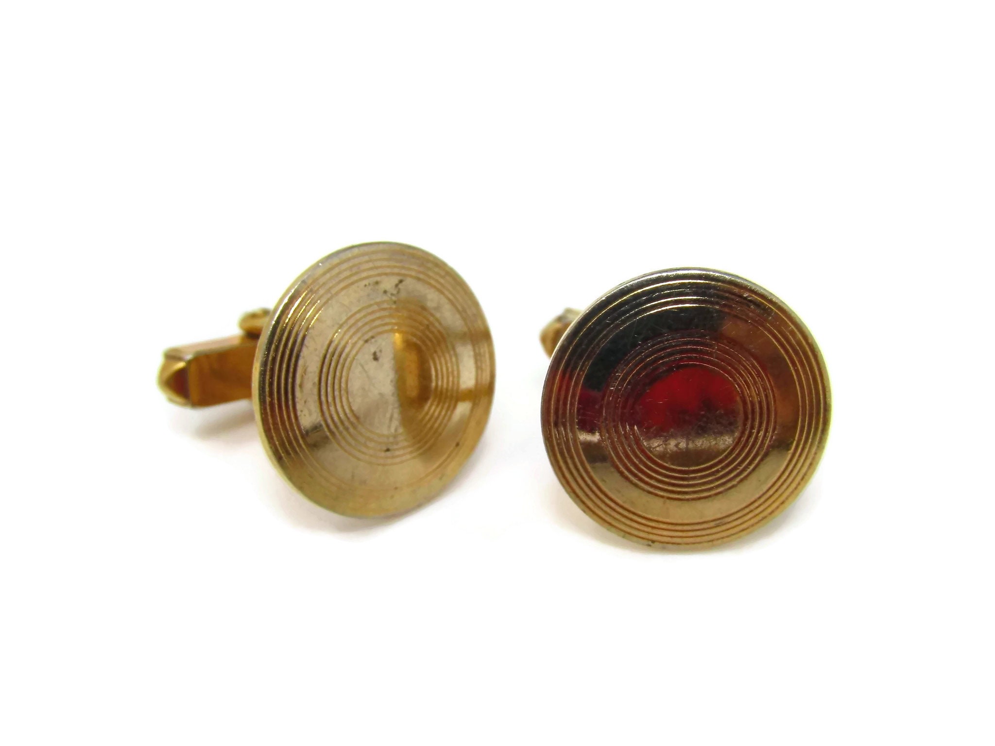 Vintage Cufflinks for Men: Concentric Circles Classic Gold Tone