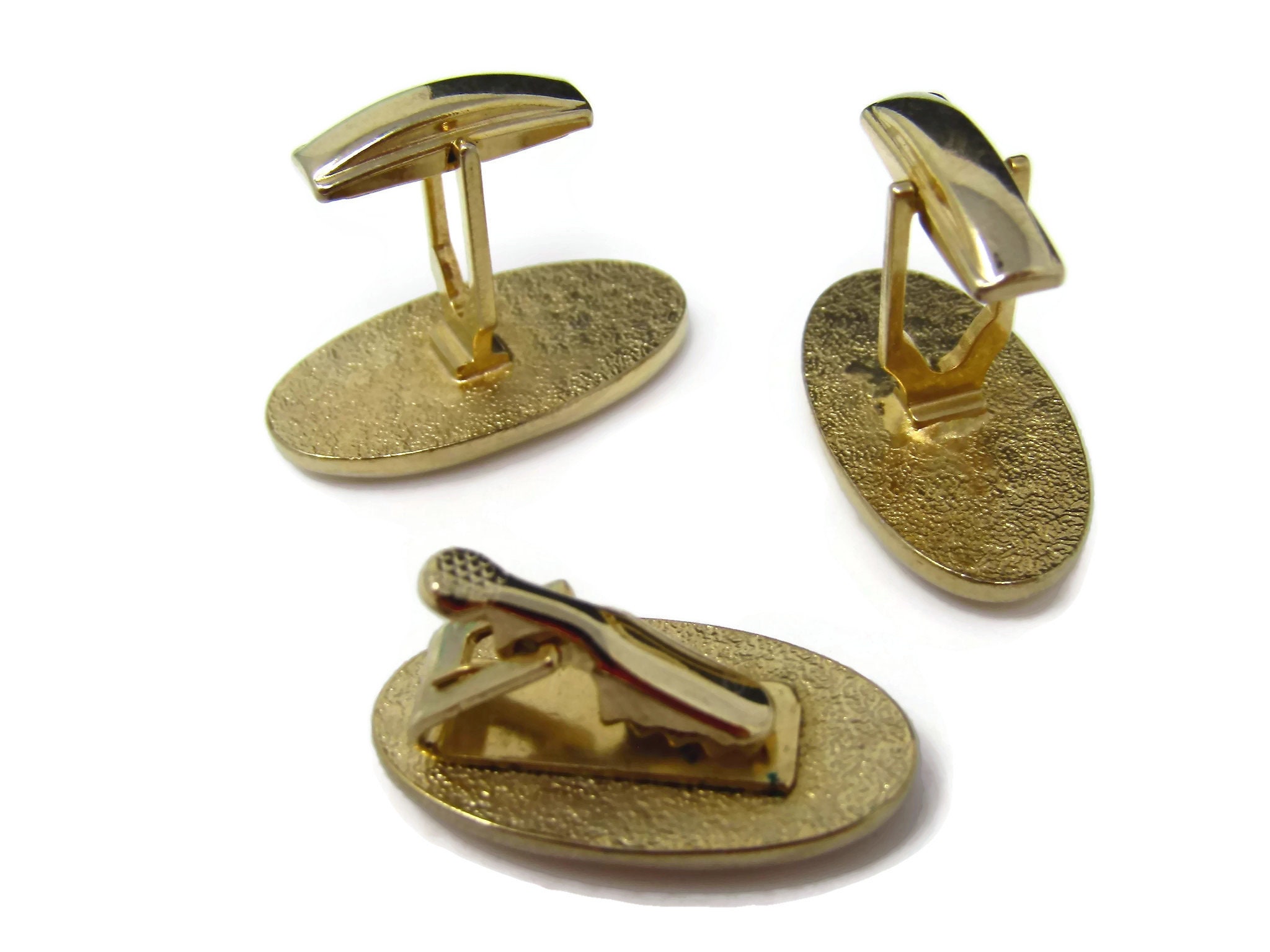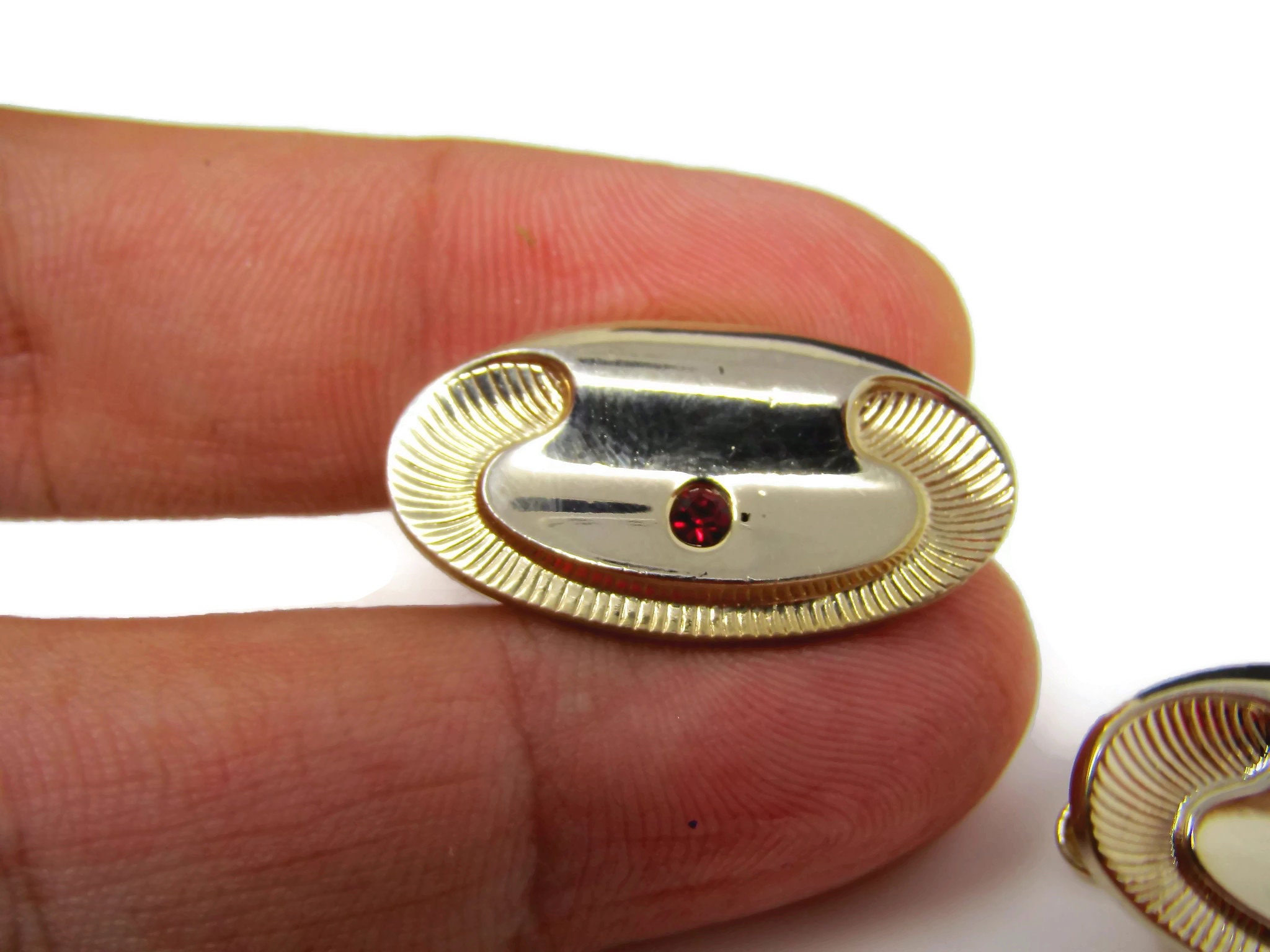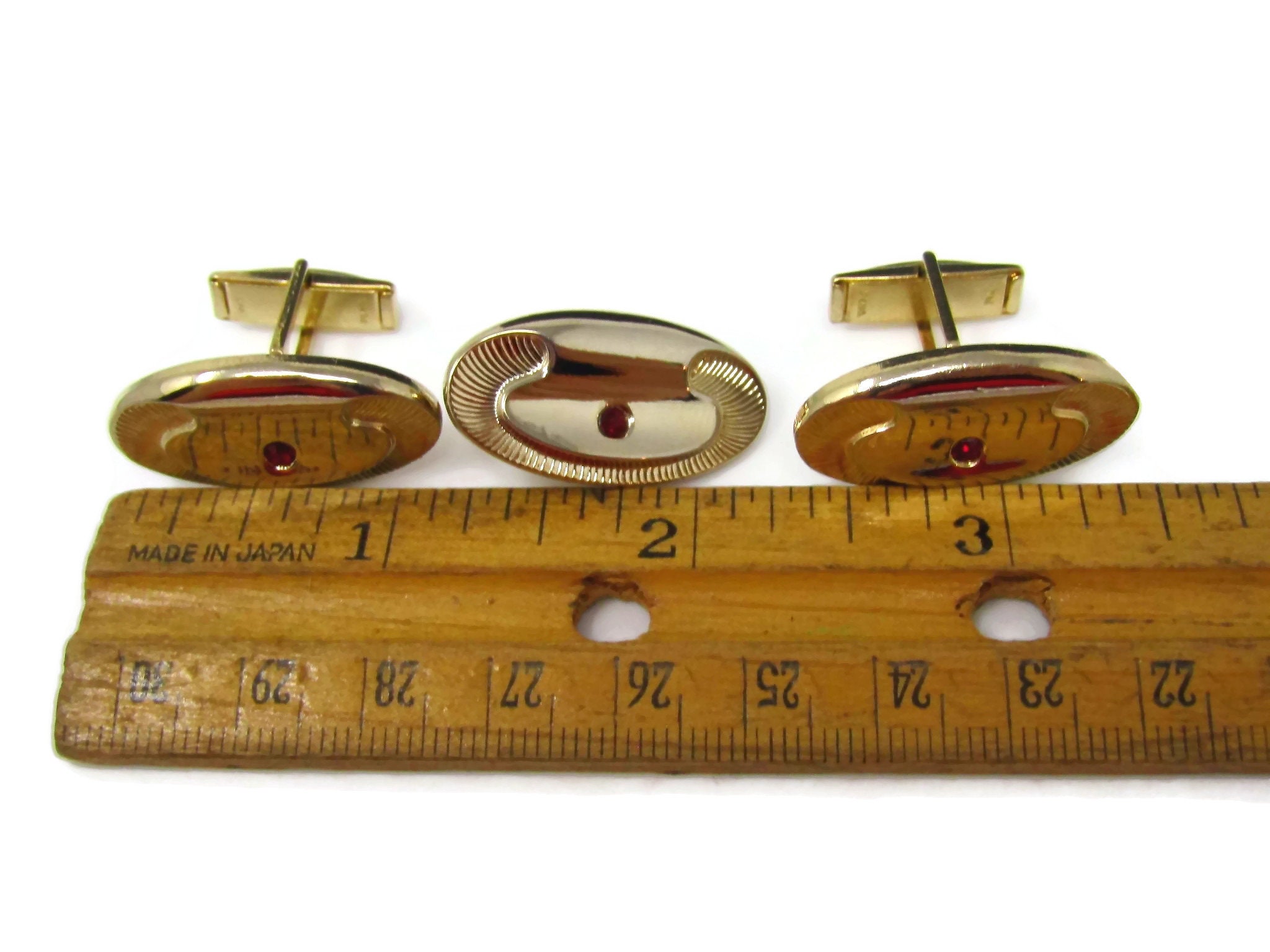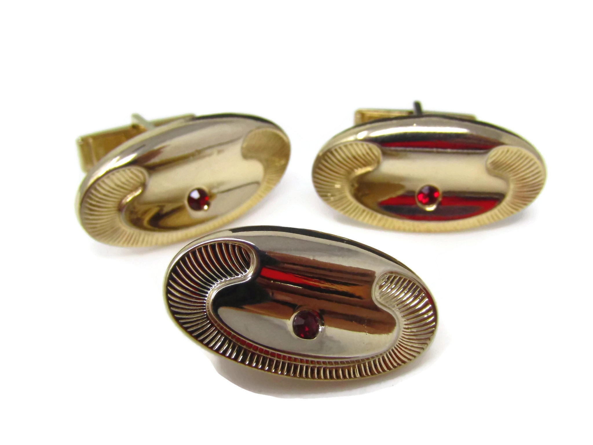 Vintage Mens Jewelry Set Tie Clip Cufflinks: Red Jewel Art Deco Gold Tone