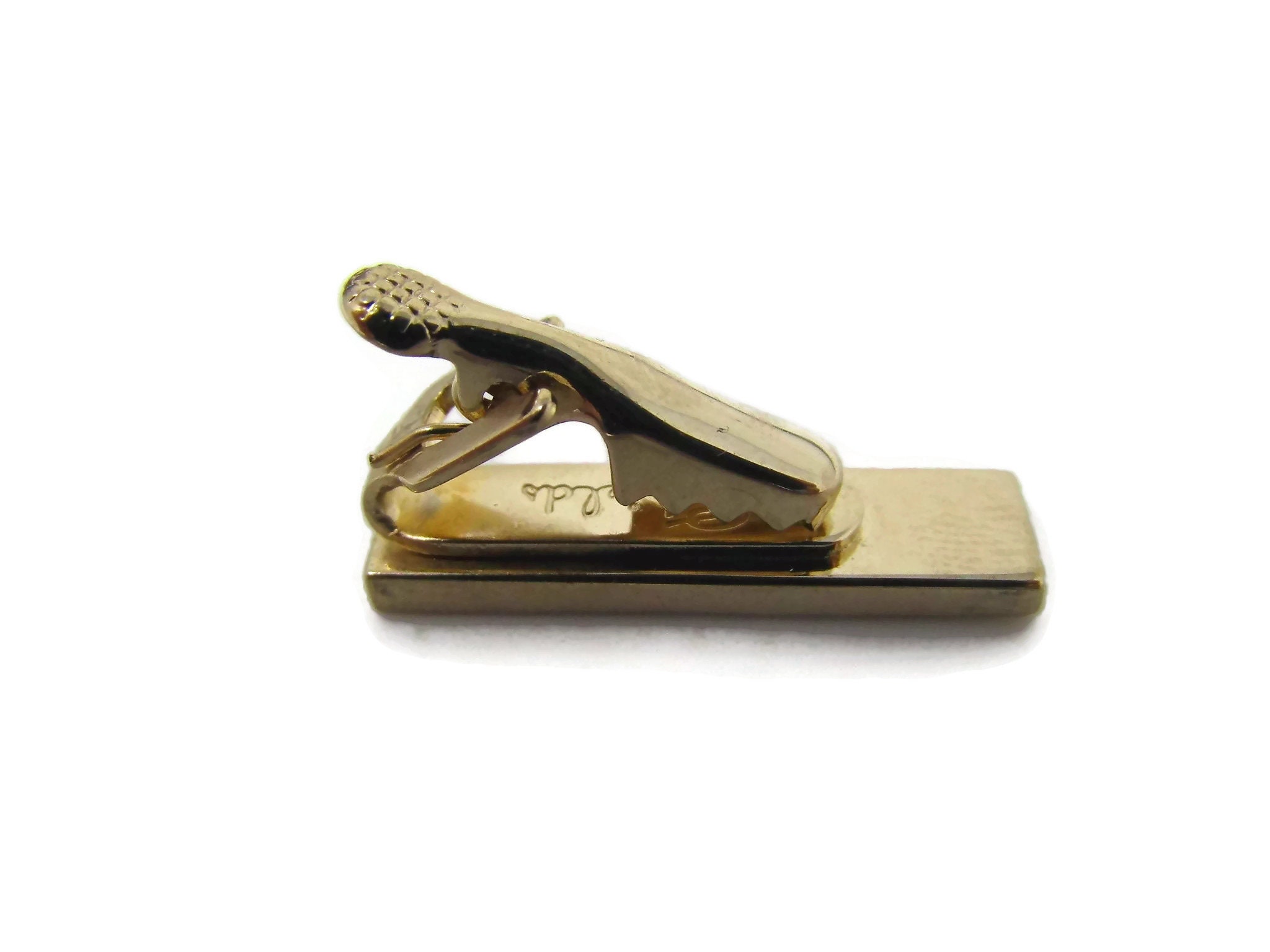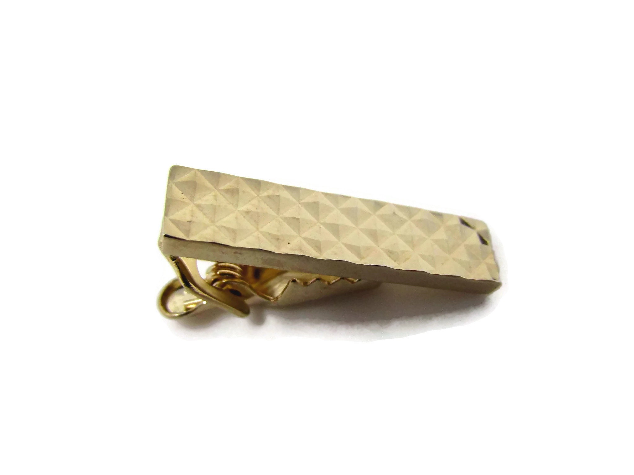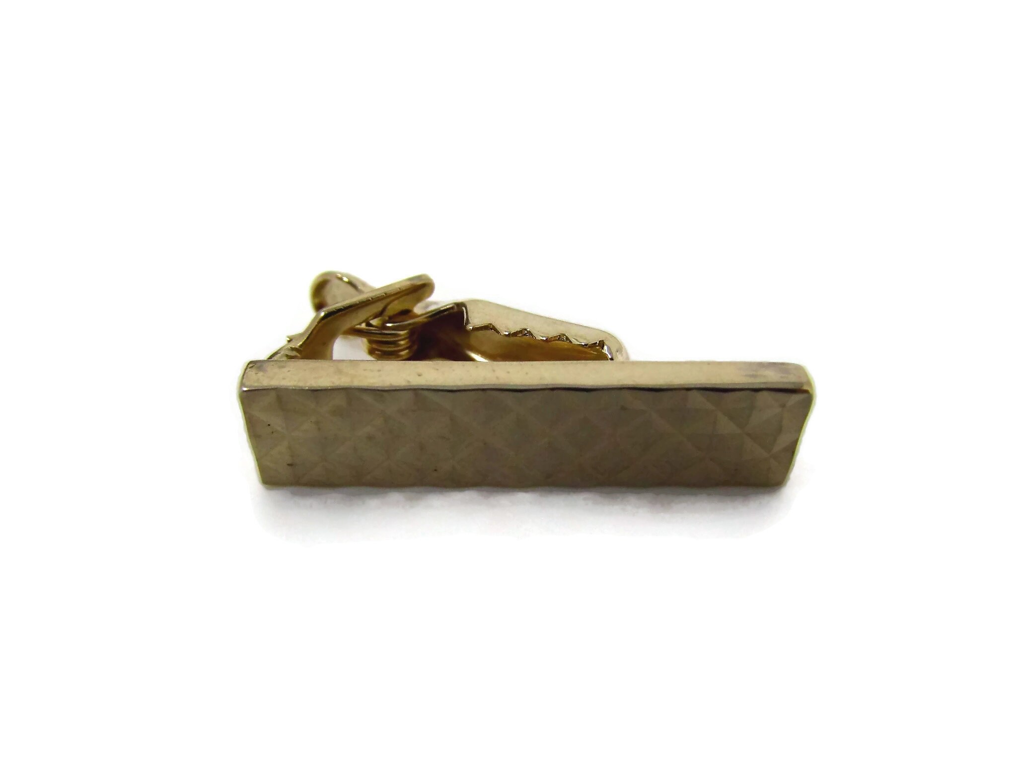 Vintage Tie Clip Tie Bar: Nice Textured Diamond Shapes Pattern Gold Tone