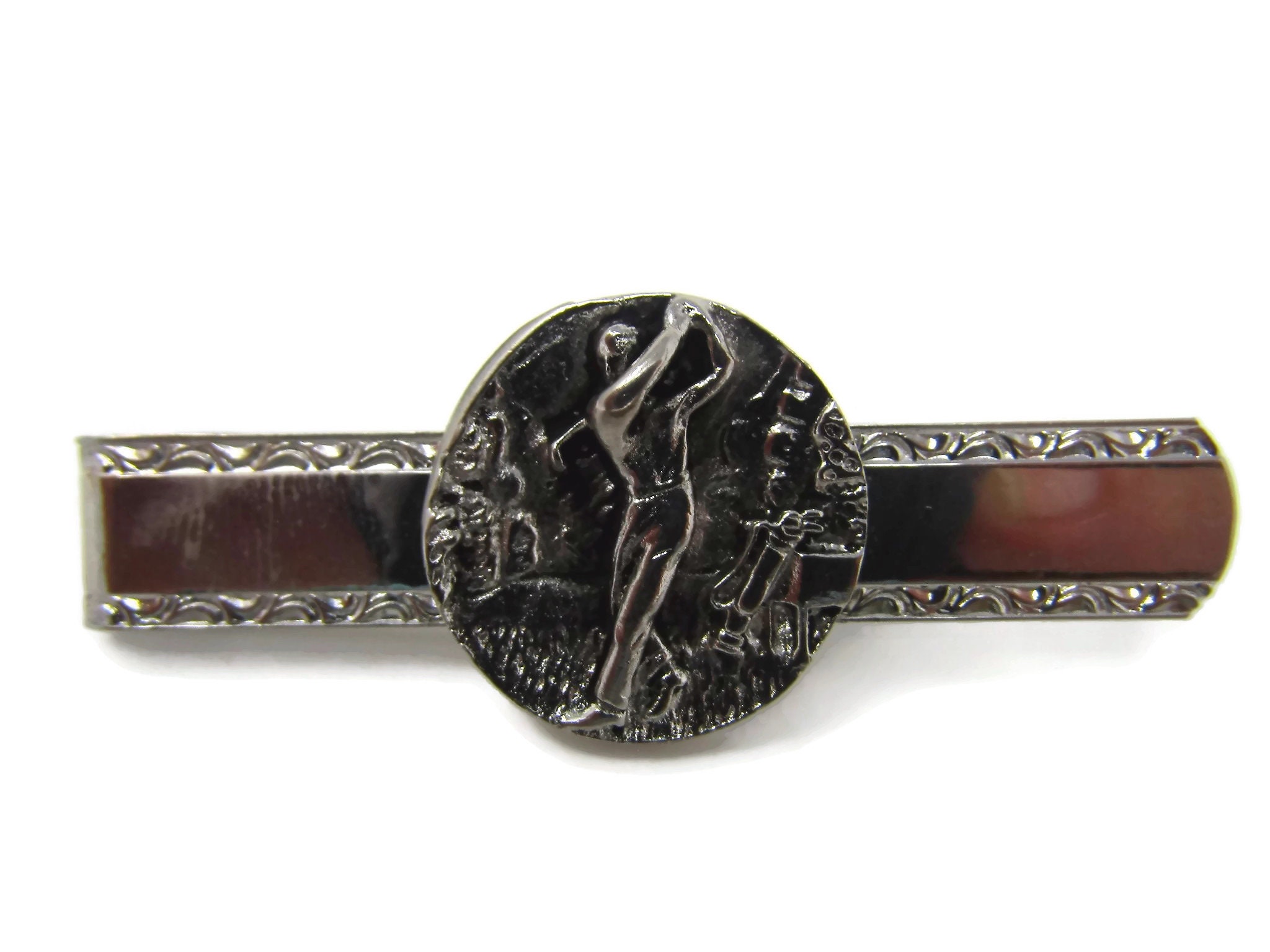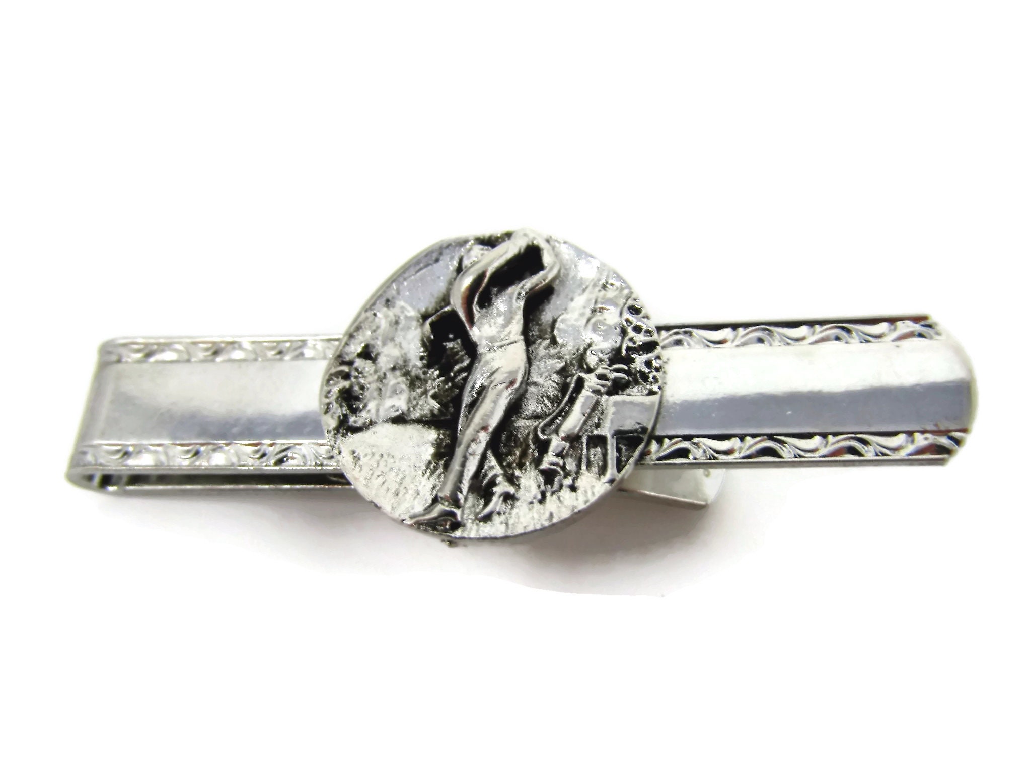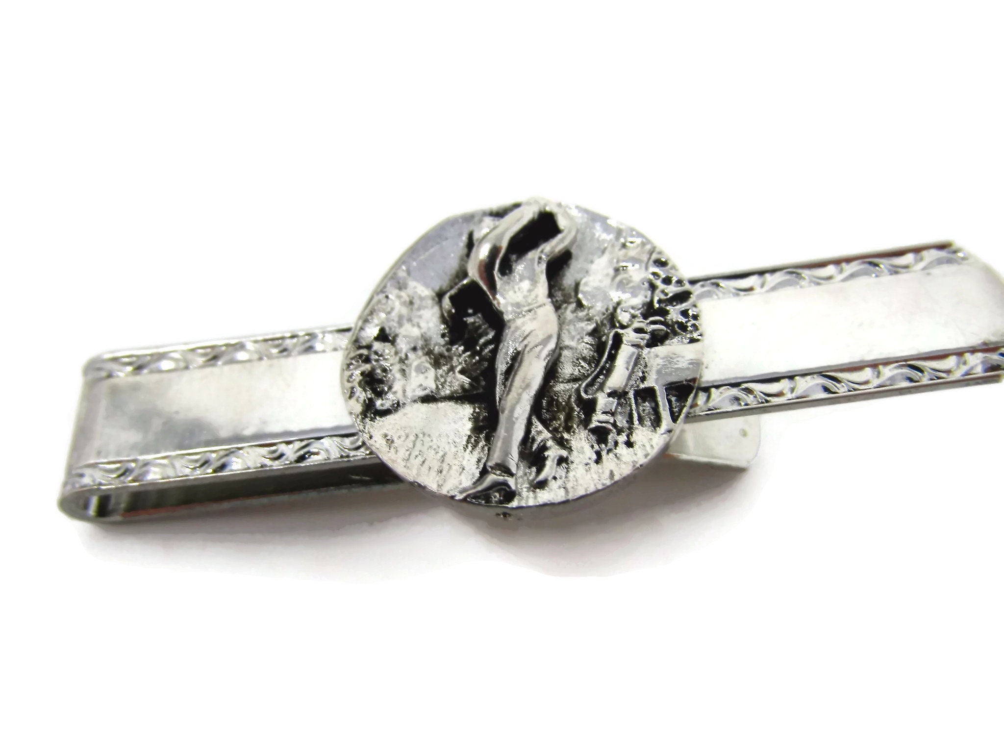 Vintage Tie Clip Tie Bar: Golfer's Gift Golf Golfing Silver Tone