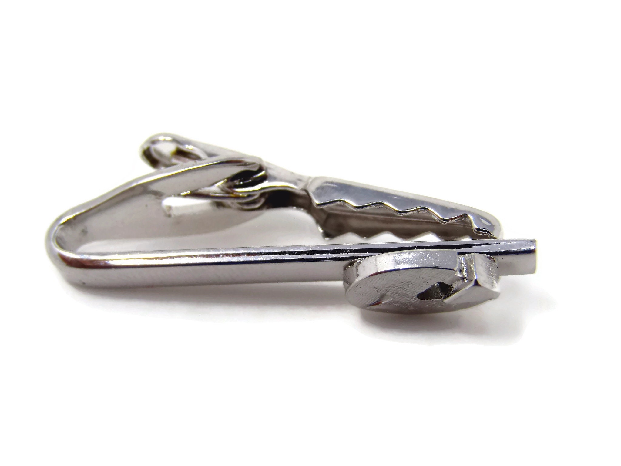 Vintage Tie Clip Tie Bar: Nice Modernist Accent Silver Tone Clean Design