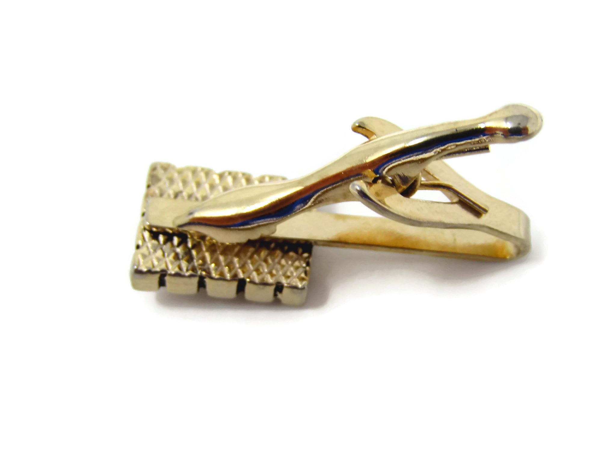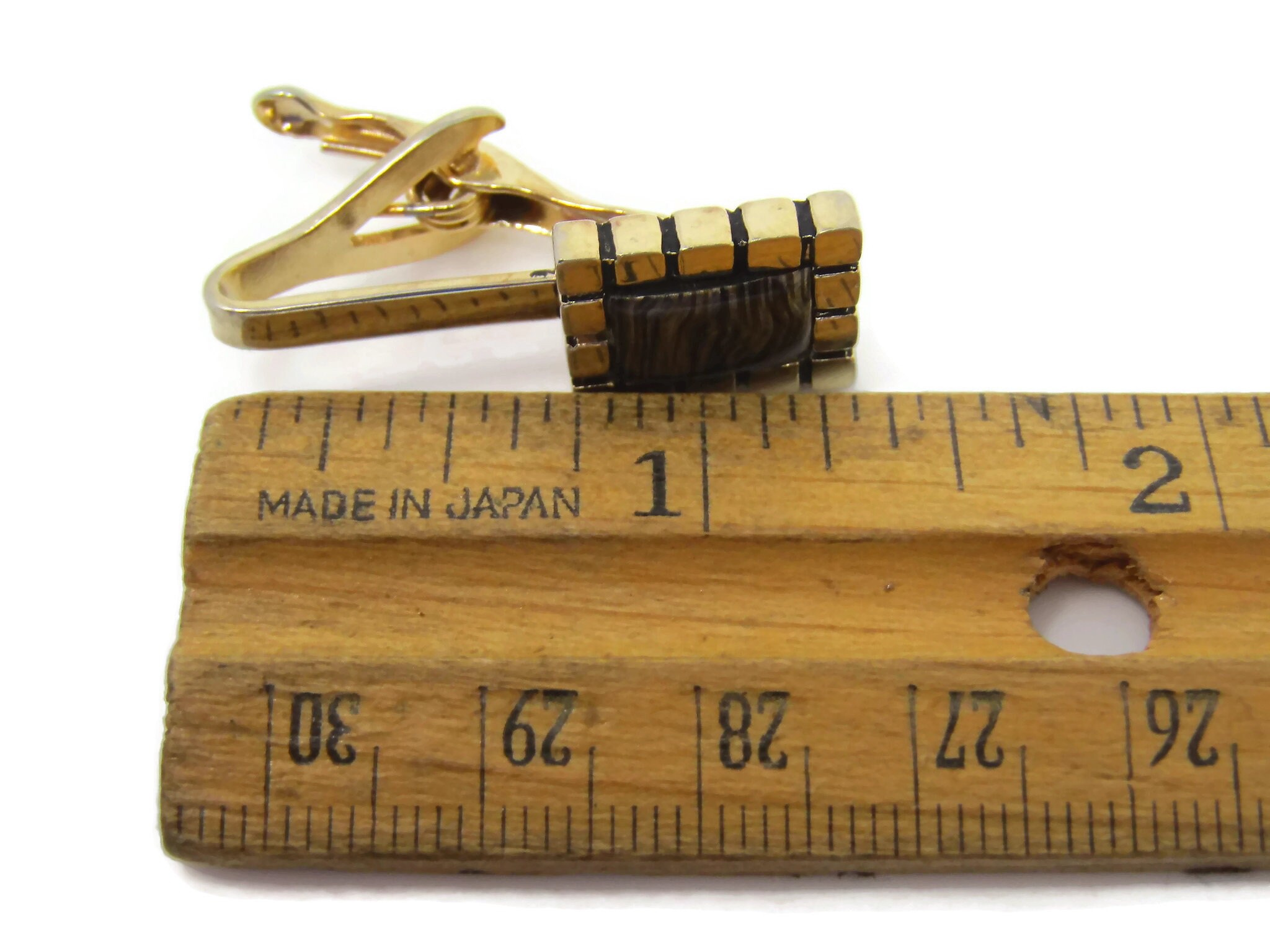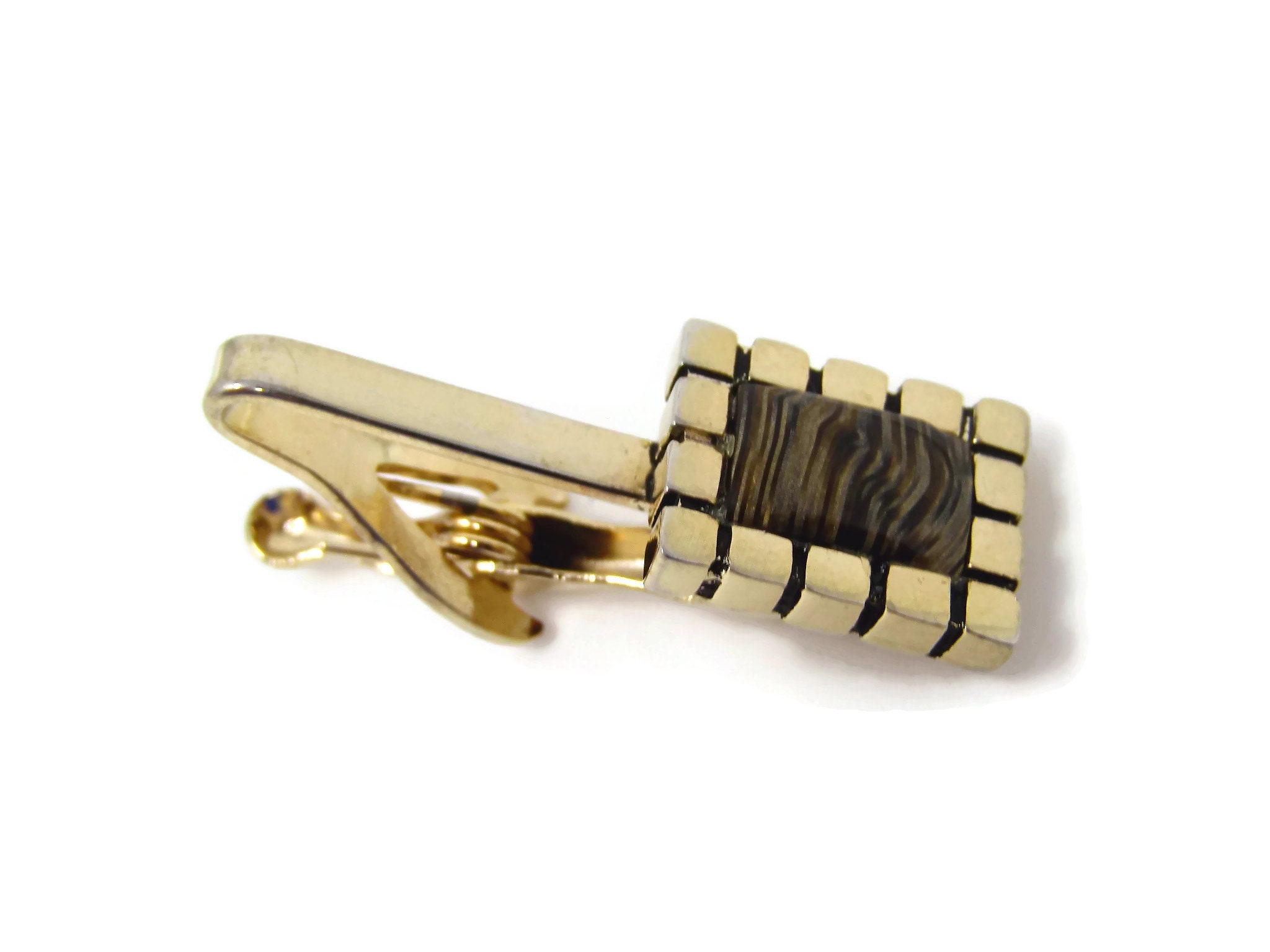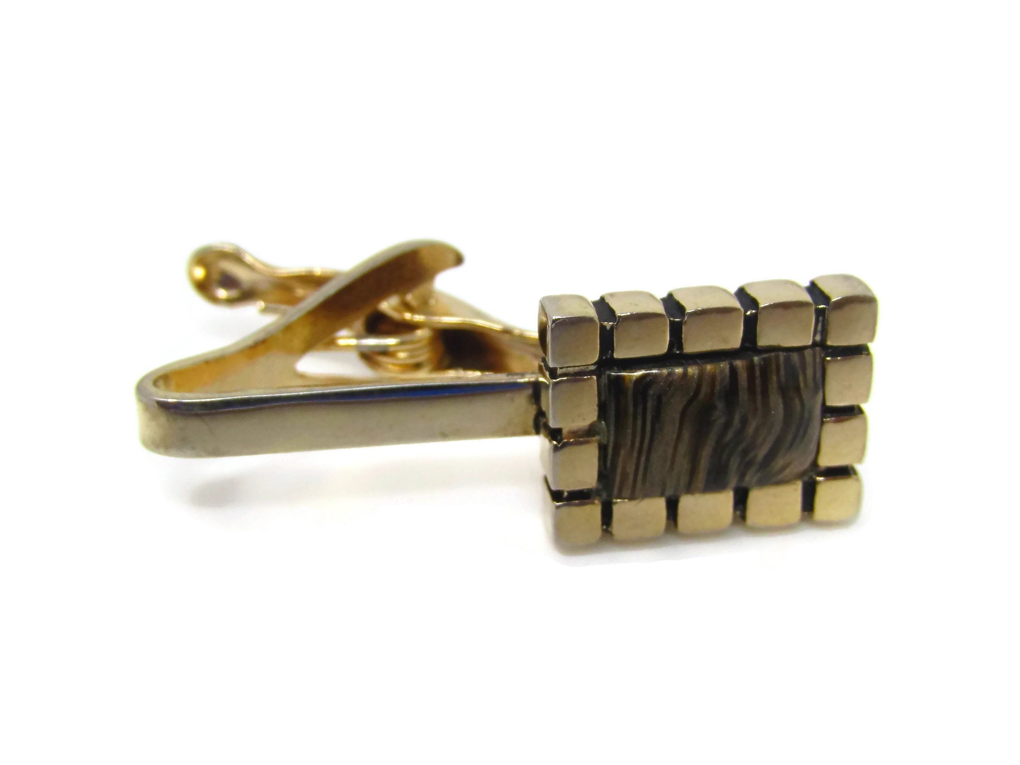 Vintage Tie Clip Tie Bar: Striped Accent Excellent Border Gold Tone