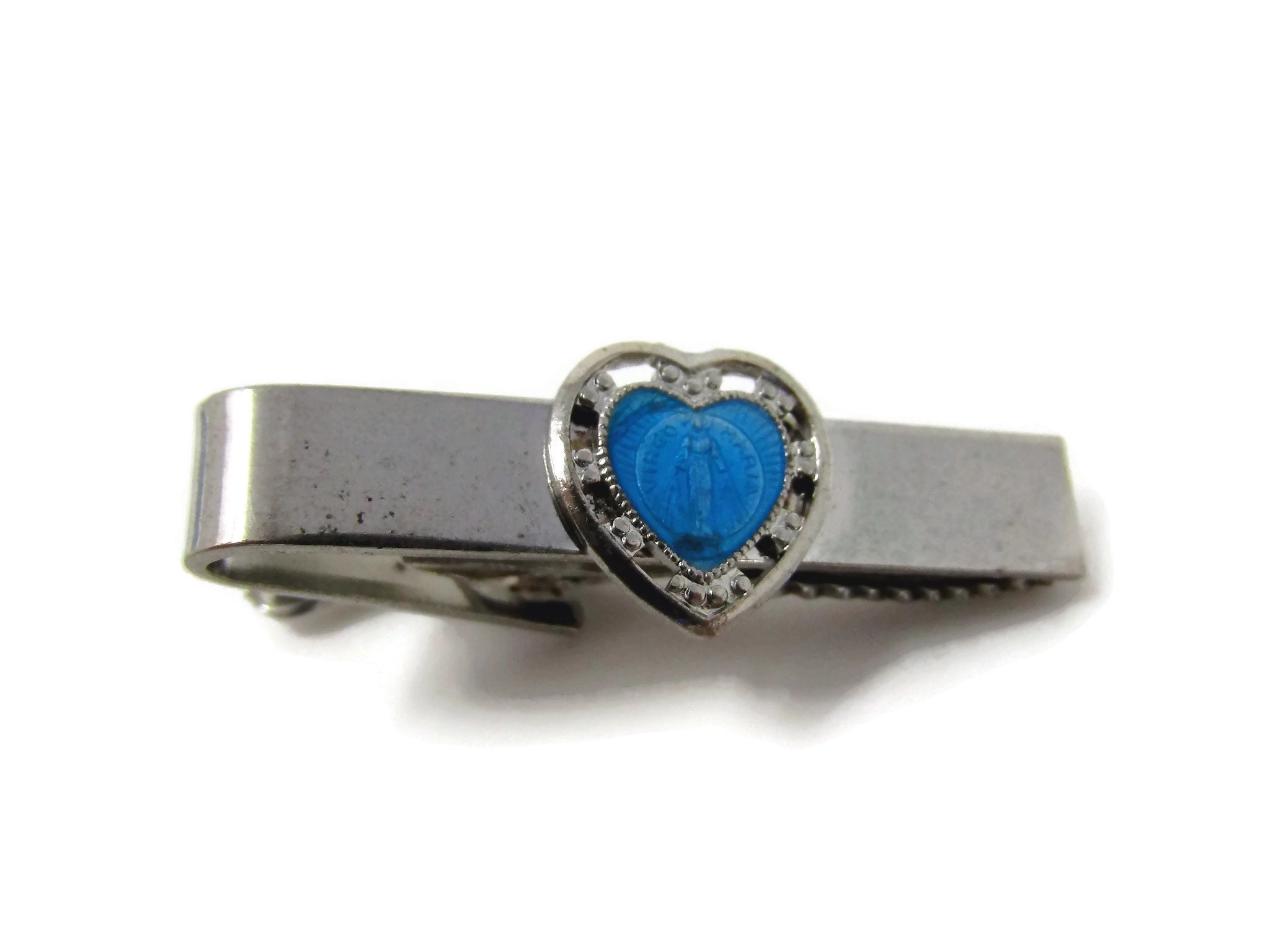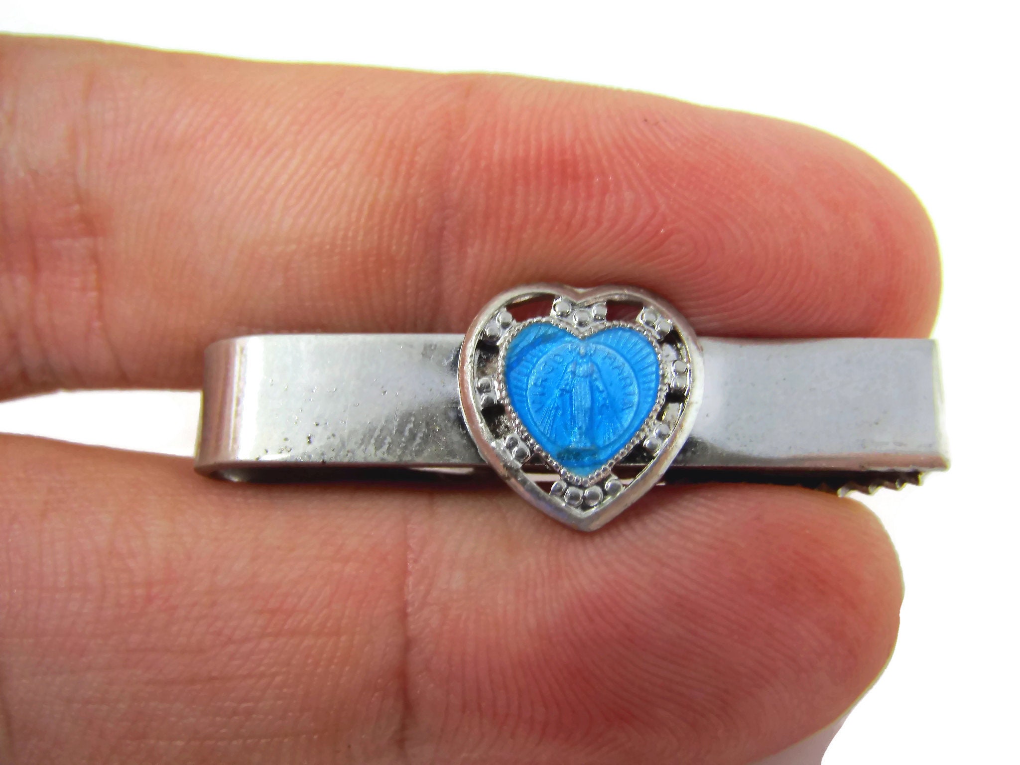 Vintage Tie Clip Tie Bar: Virgin Mary Heart Design Christian Religious