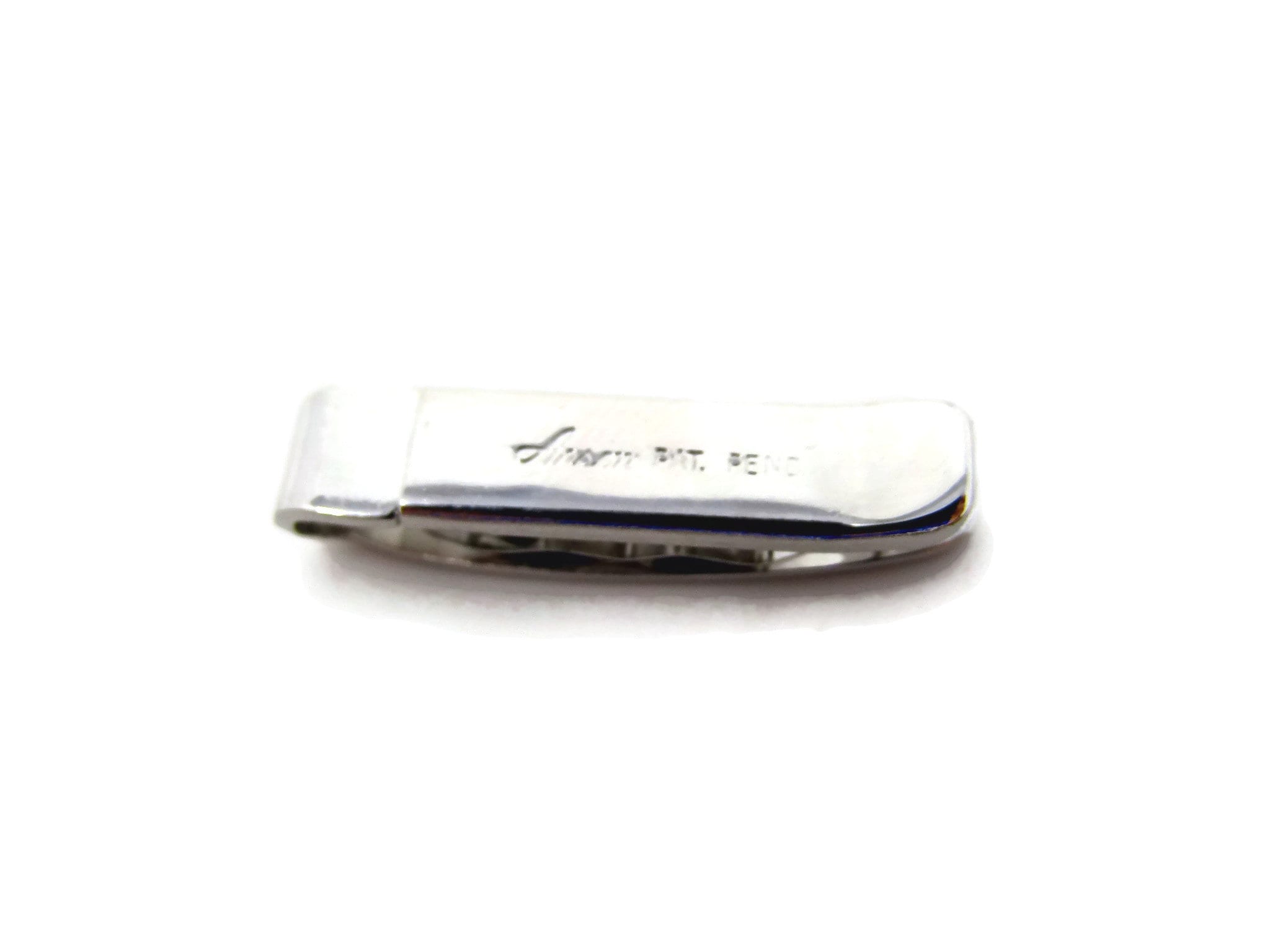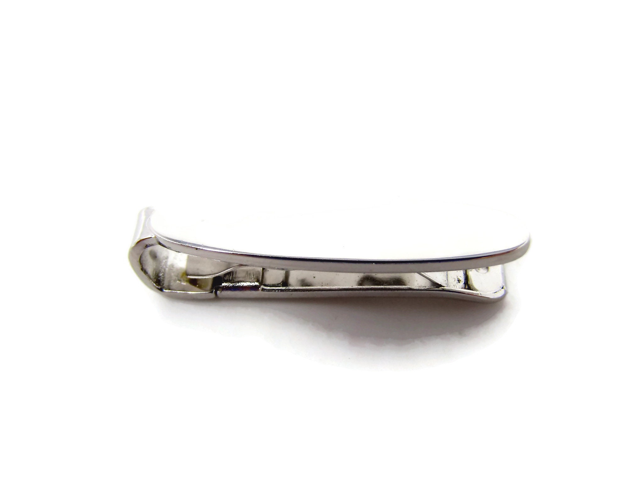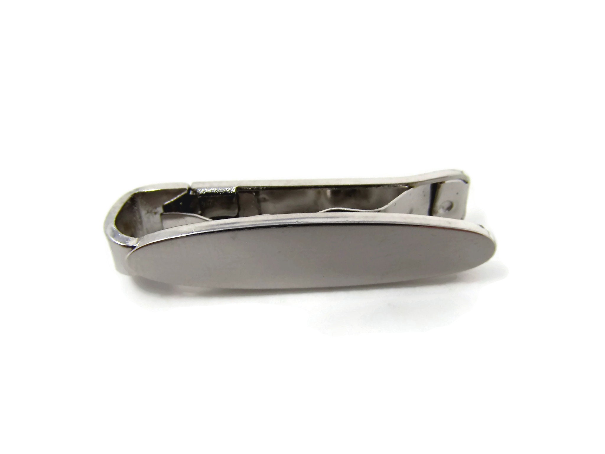 Vintage Tie Clip Tie Bar: Smooth Body Silver Tone Long Oval Design