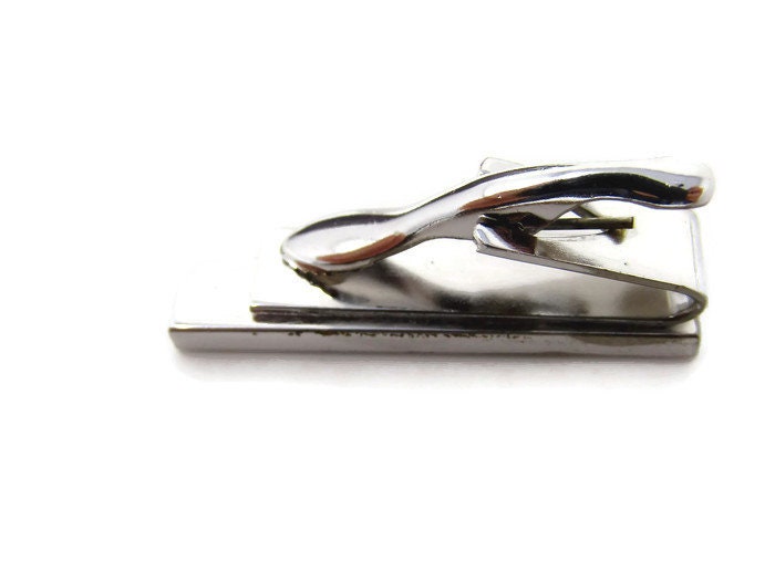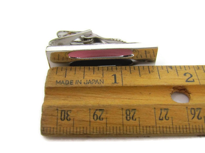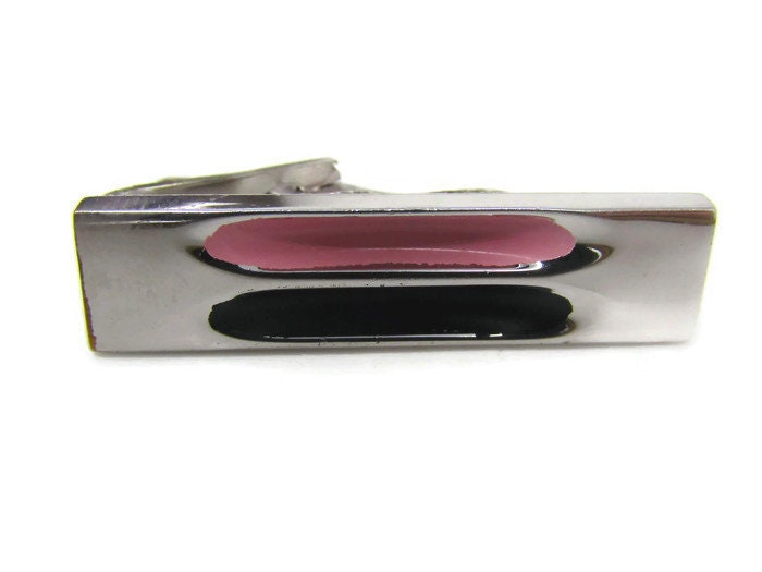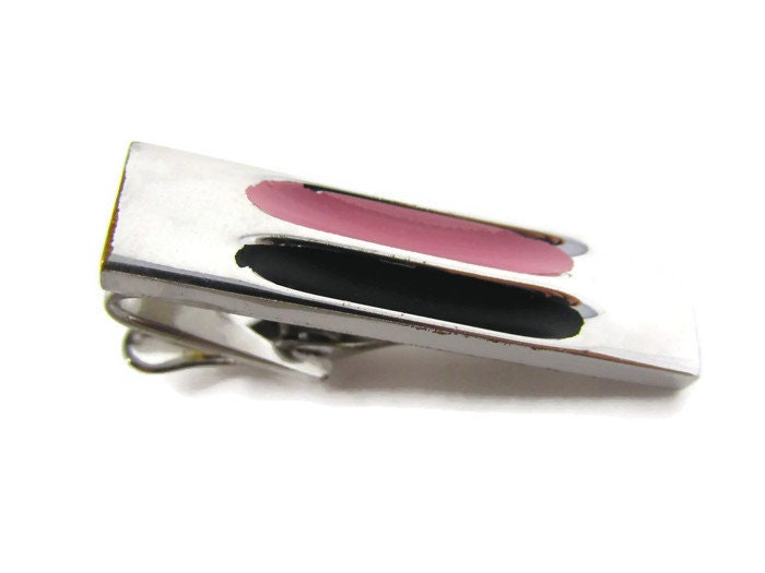 Pink & Black Tie Clip Vintage Tie Bar: Modernist Silver Tone