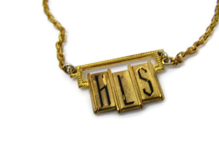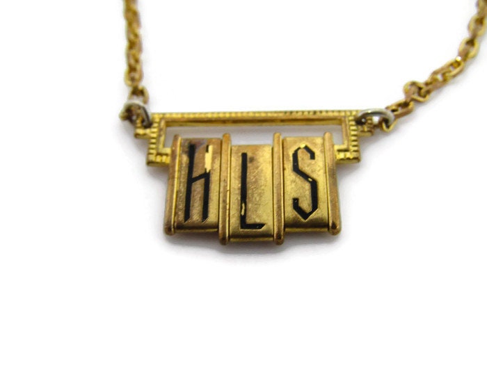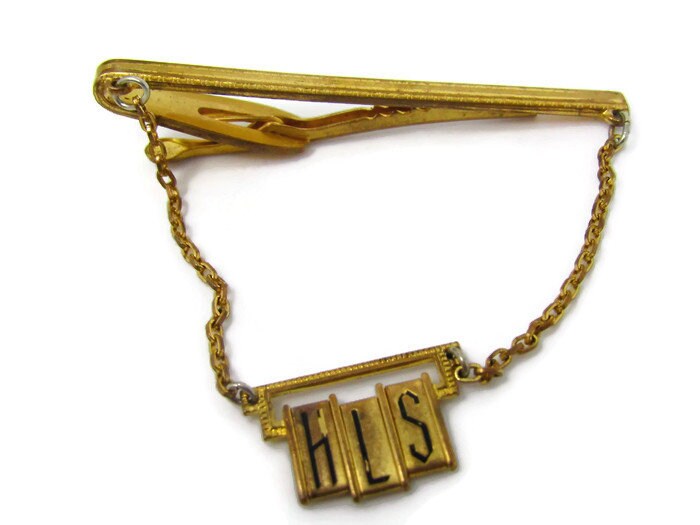 HLS Initials Tie Clip Vintage Tie Bar: Art Deco Letters Made in USA