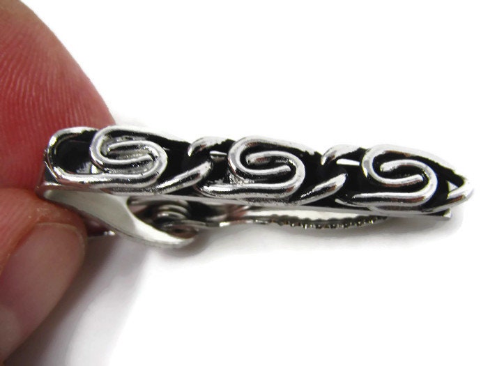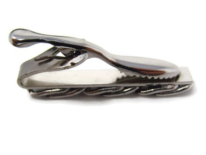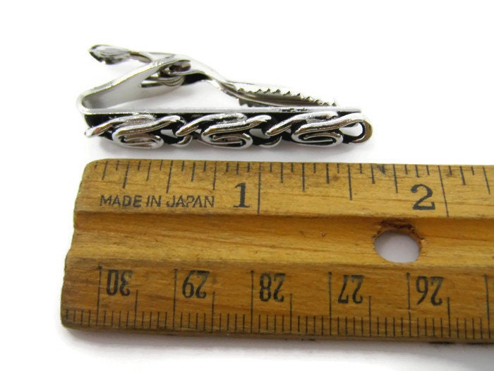 Modernist Link Design Tie Clip Vintage Tie Bar: Silver Tone