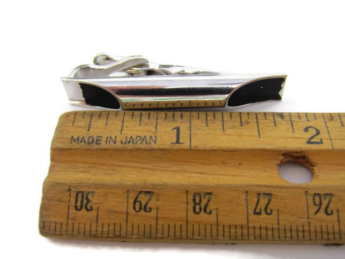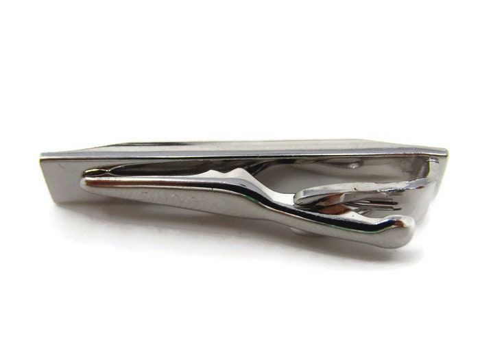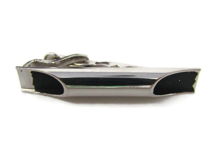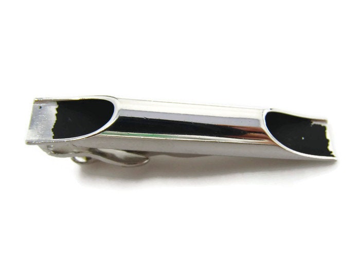 Tube Modernist Open Center Tie Clip Vintage Tie Bar: Silver Tone