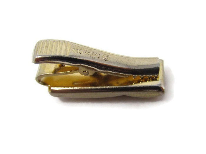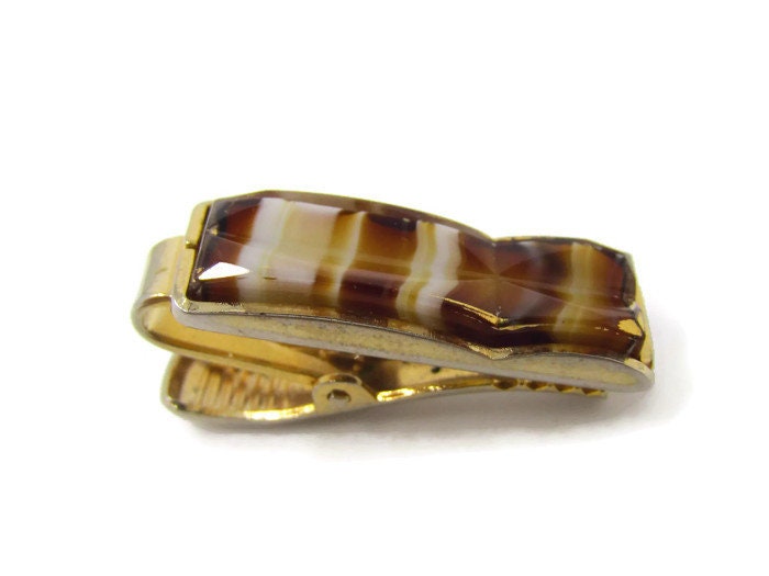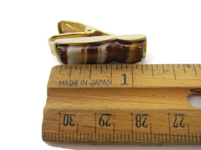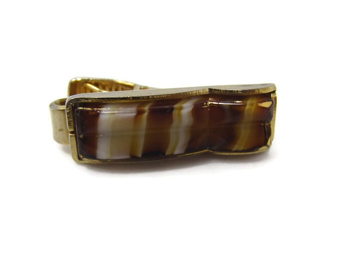 Brown White Stripe Glass Tie Clip Vintage Tie Bar: Nice Design Smaller Size