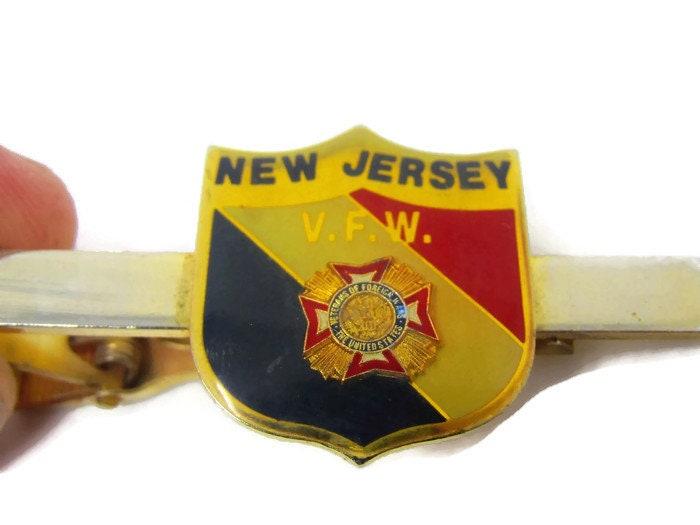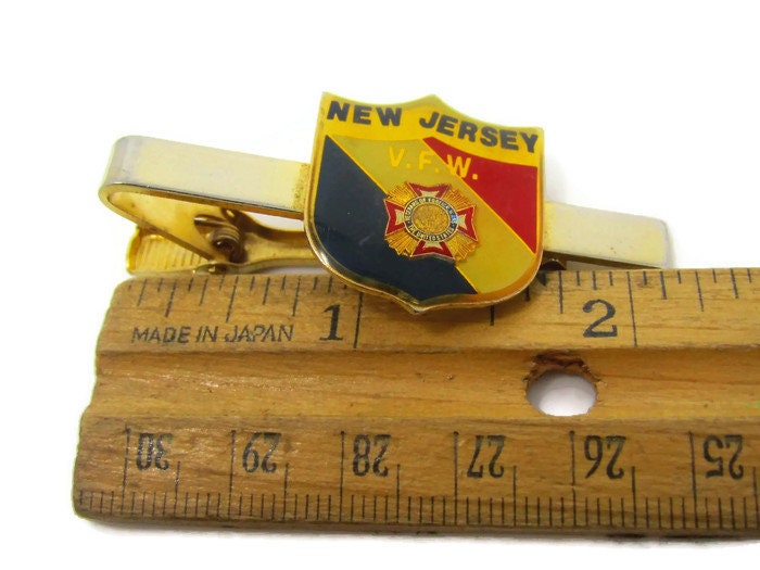 VFW Tie Clip Vintage Tie Bar: Veterans New Jersey Shield Design