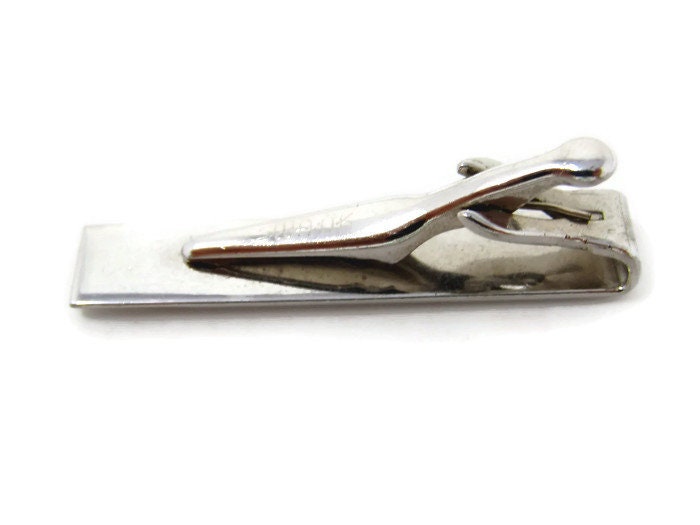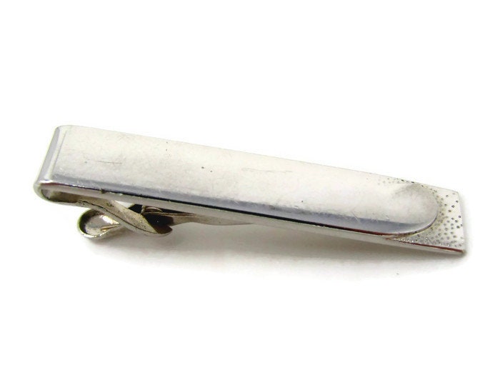 Modernist Tip Tie Clip Vintage Tie Bar: Silver Tone