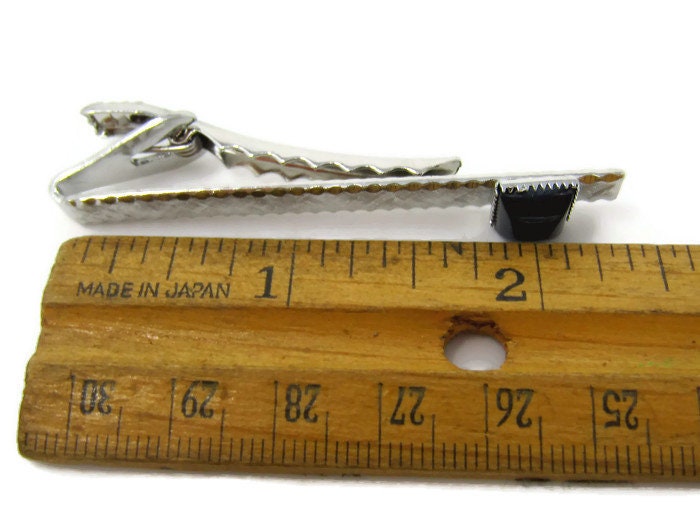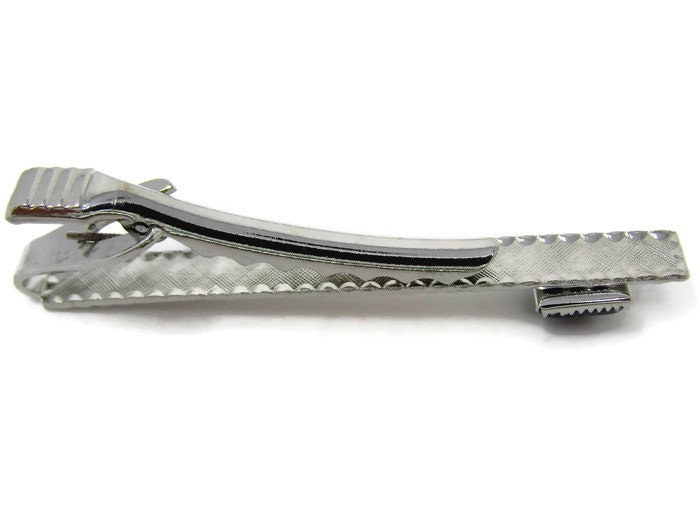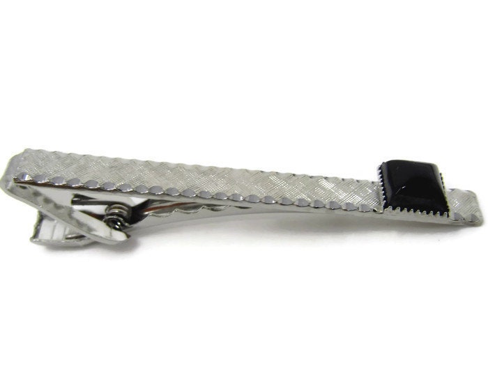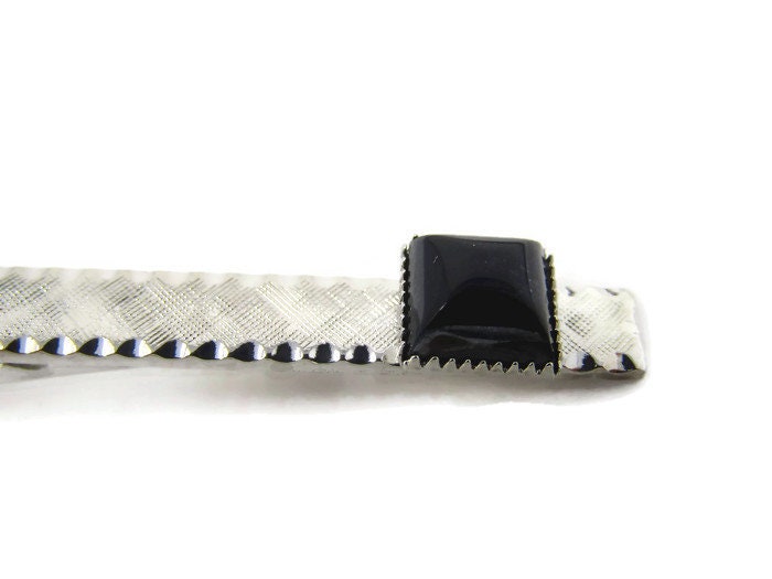 Black Accent Tie Clip Vintage Tie Bar: Silver Tone Nice Texture