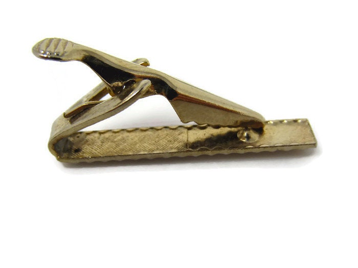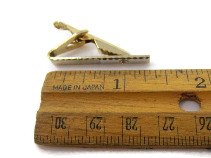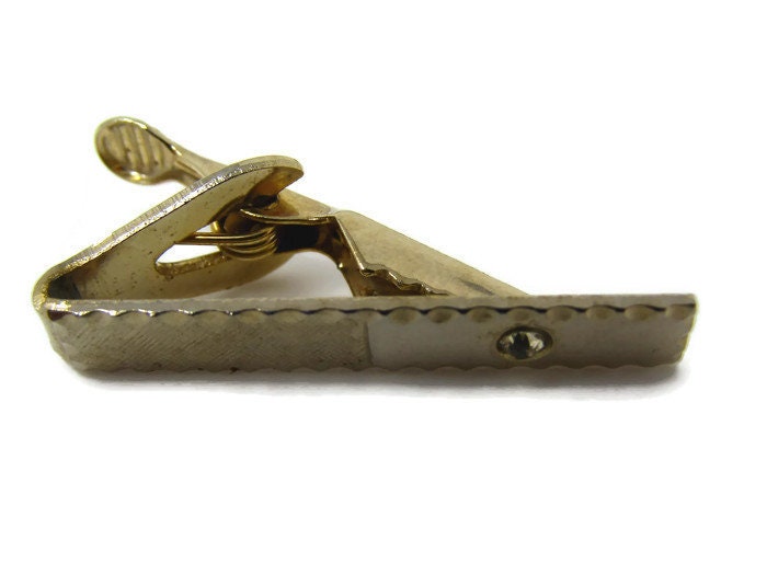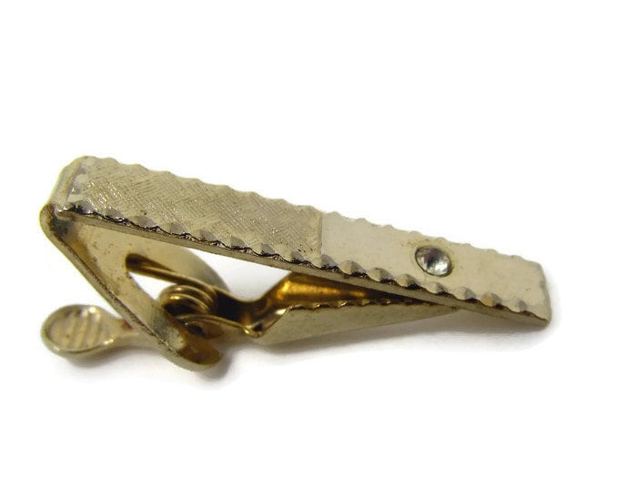 Half Texture Half Smooth Clear Jewel Tie Clip Vintage Tie Bar: Gold Tone Body