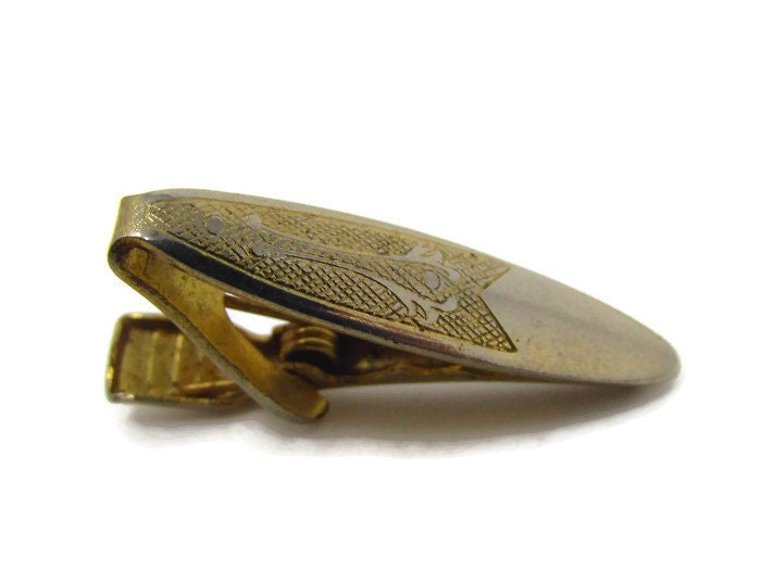 Stylized Leaf & Berry Tie Clip Vintage Tie Bar: Gold Tone