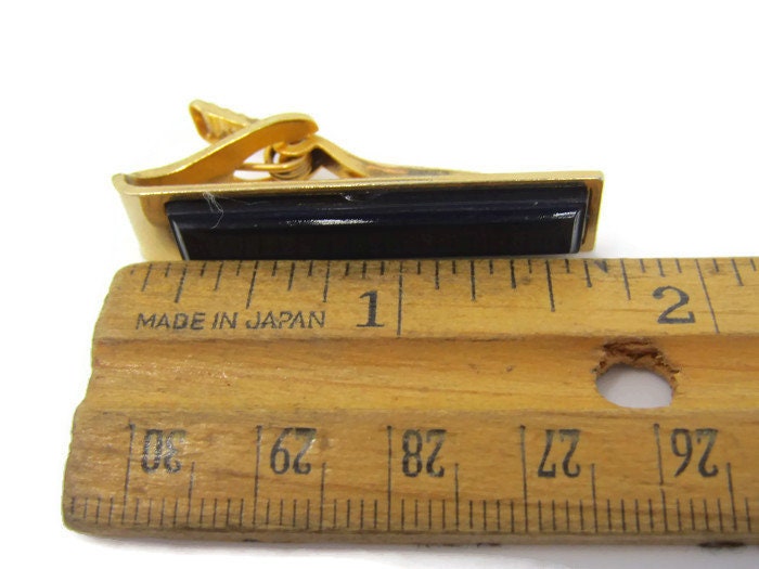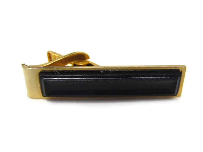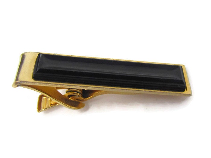 Black Center Tie Clip Vintage Tie Bar: Gold Tone