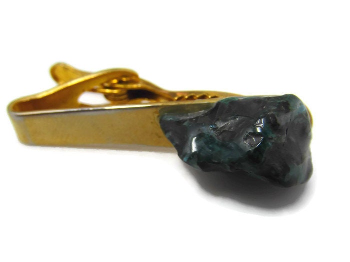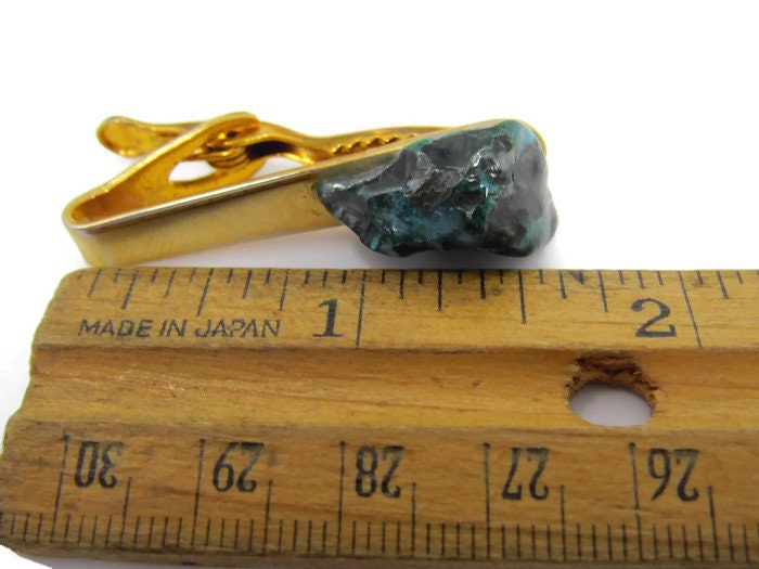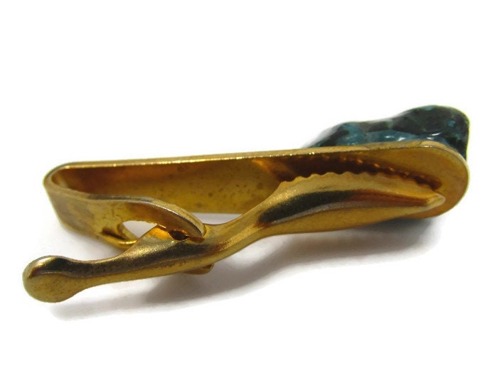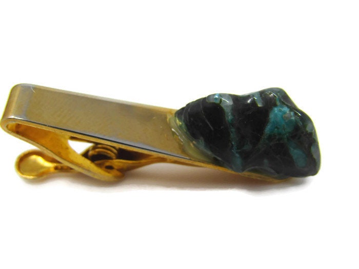 Blue Black Stone Tie Clip Vintage Tie Bar: Gold Tone Body