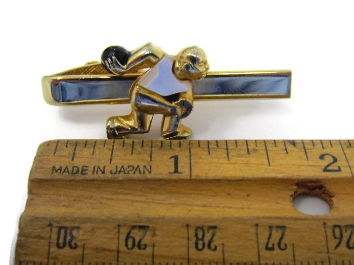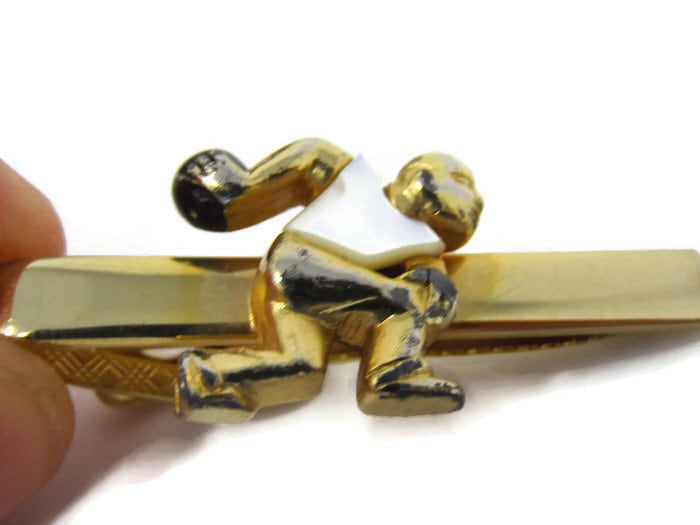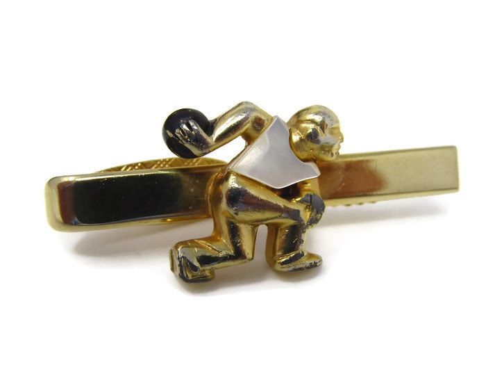 Rare Bowler Design Tie Clip Vintage Tie Bar: Mother of Pearl Shirt