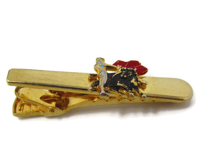 Bull Fighter Tie Clip Vintage Tie Bar: Gold Tone