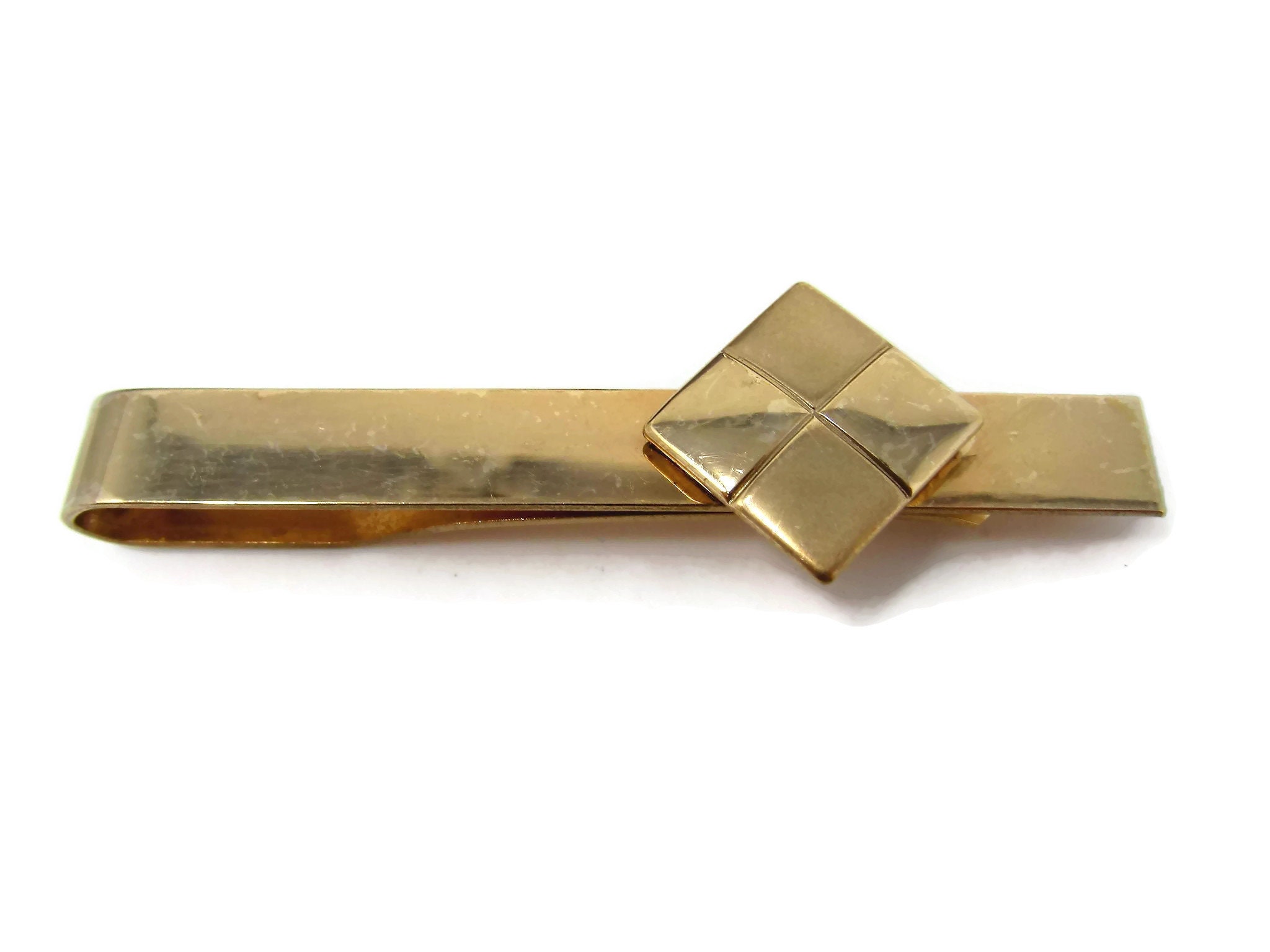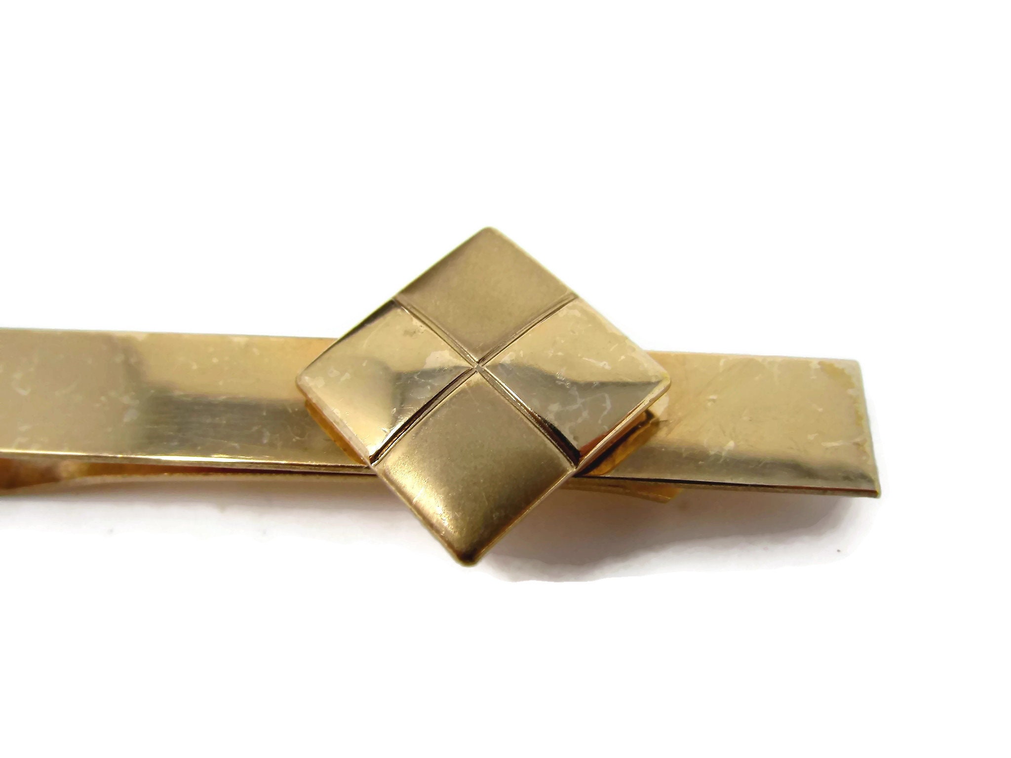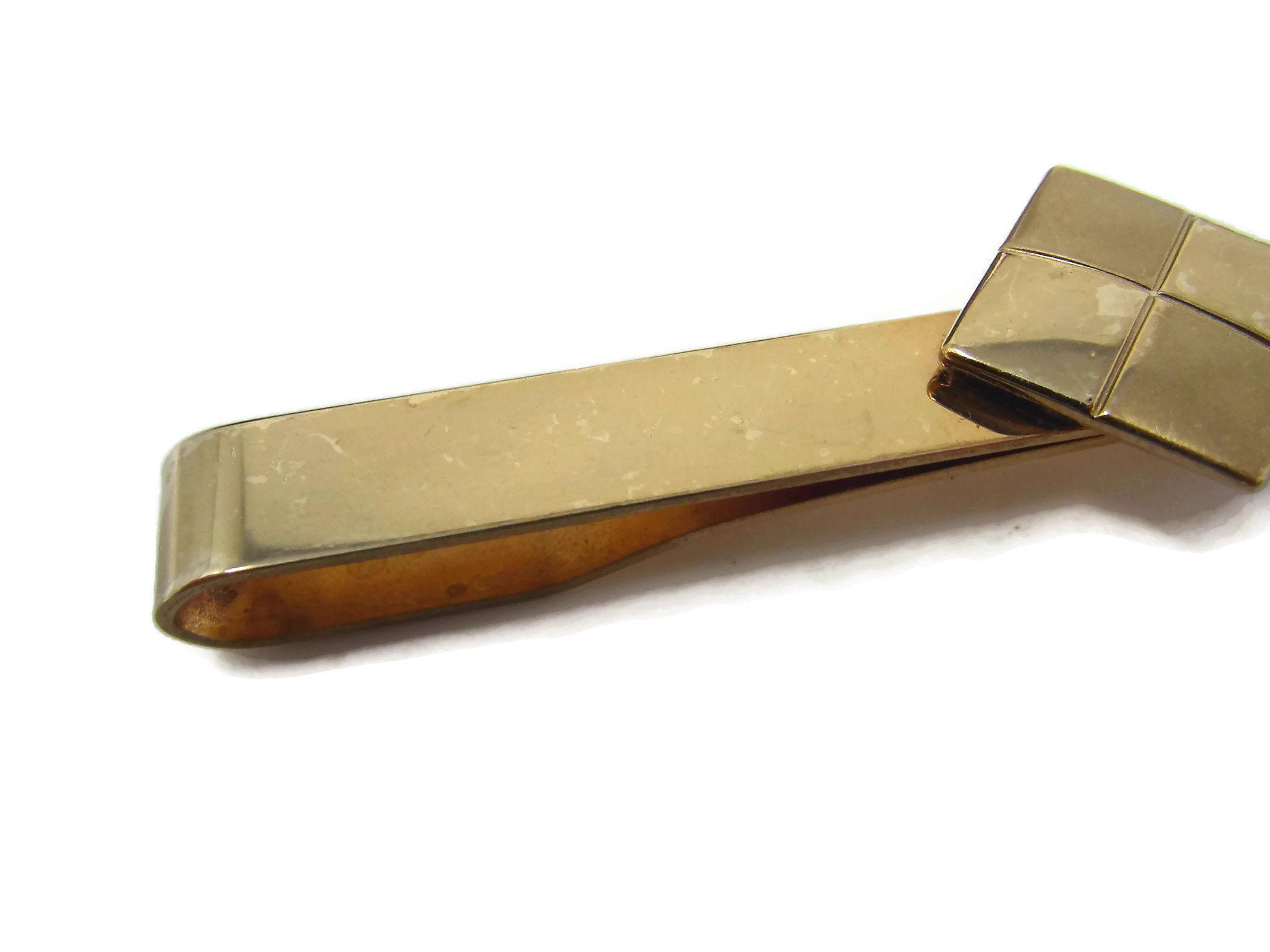 Vintage Tie Clip Tie Bar: Checkered Square Excellent Design Gold Tone High Quality