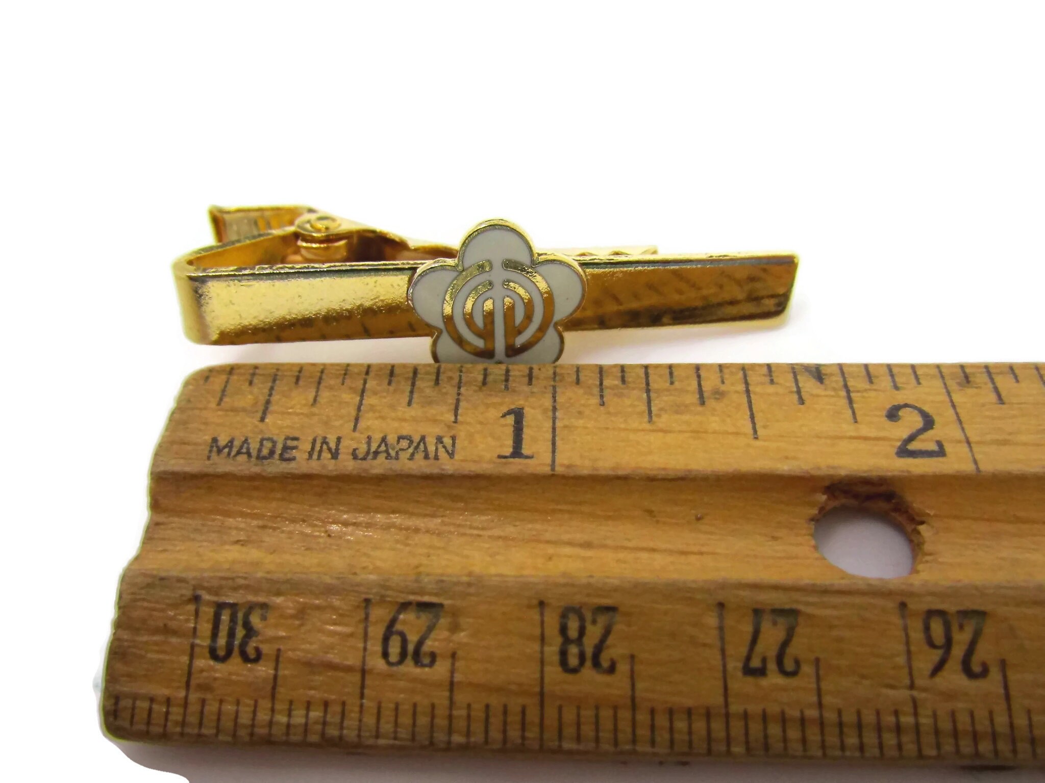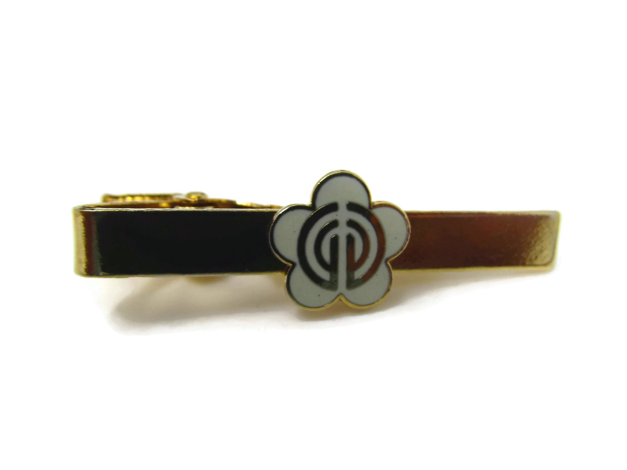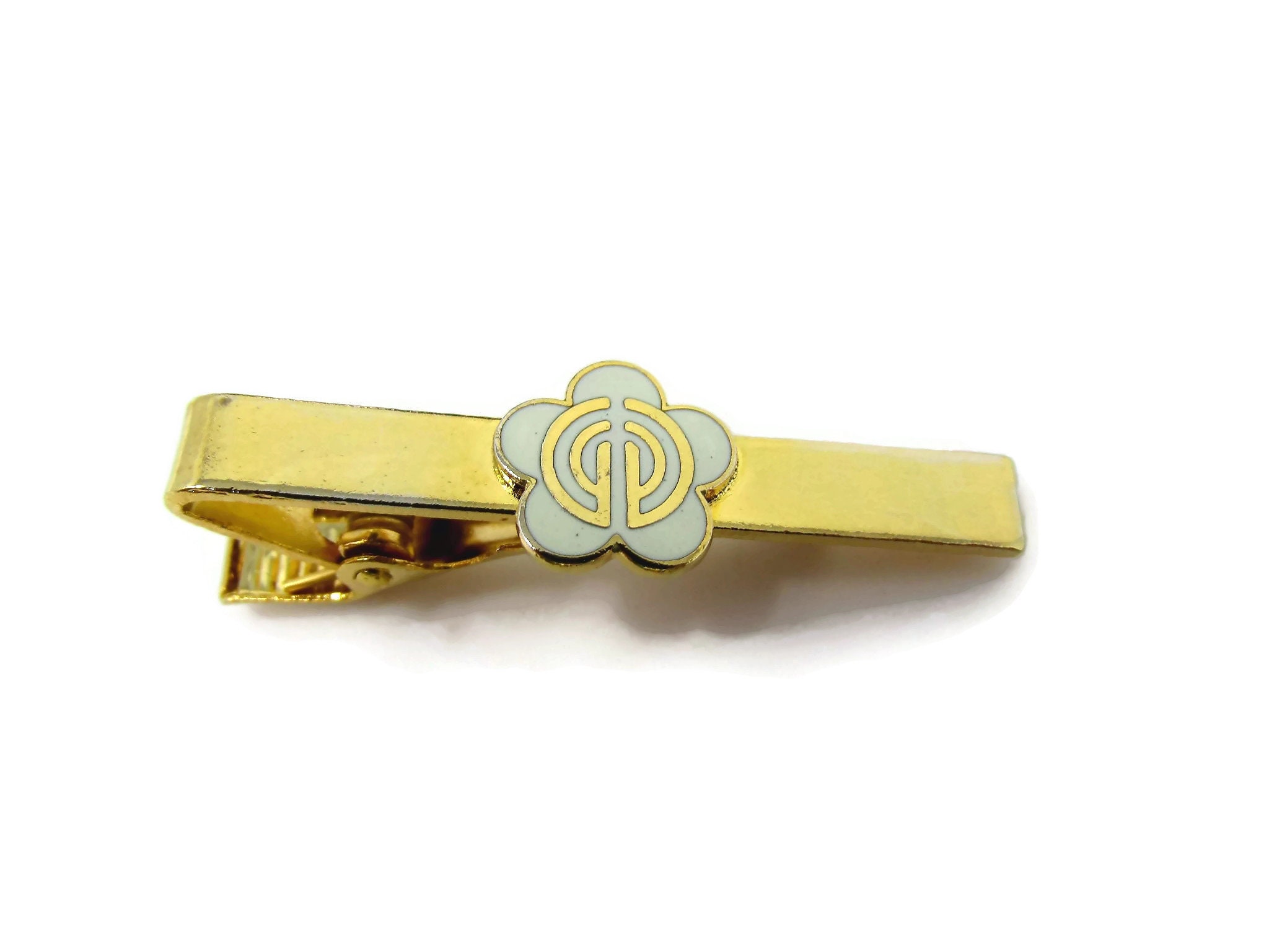 Vintage Tie Clip Tie Bar: White Flower Logo