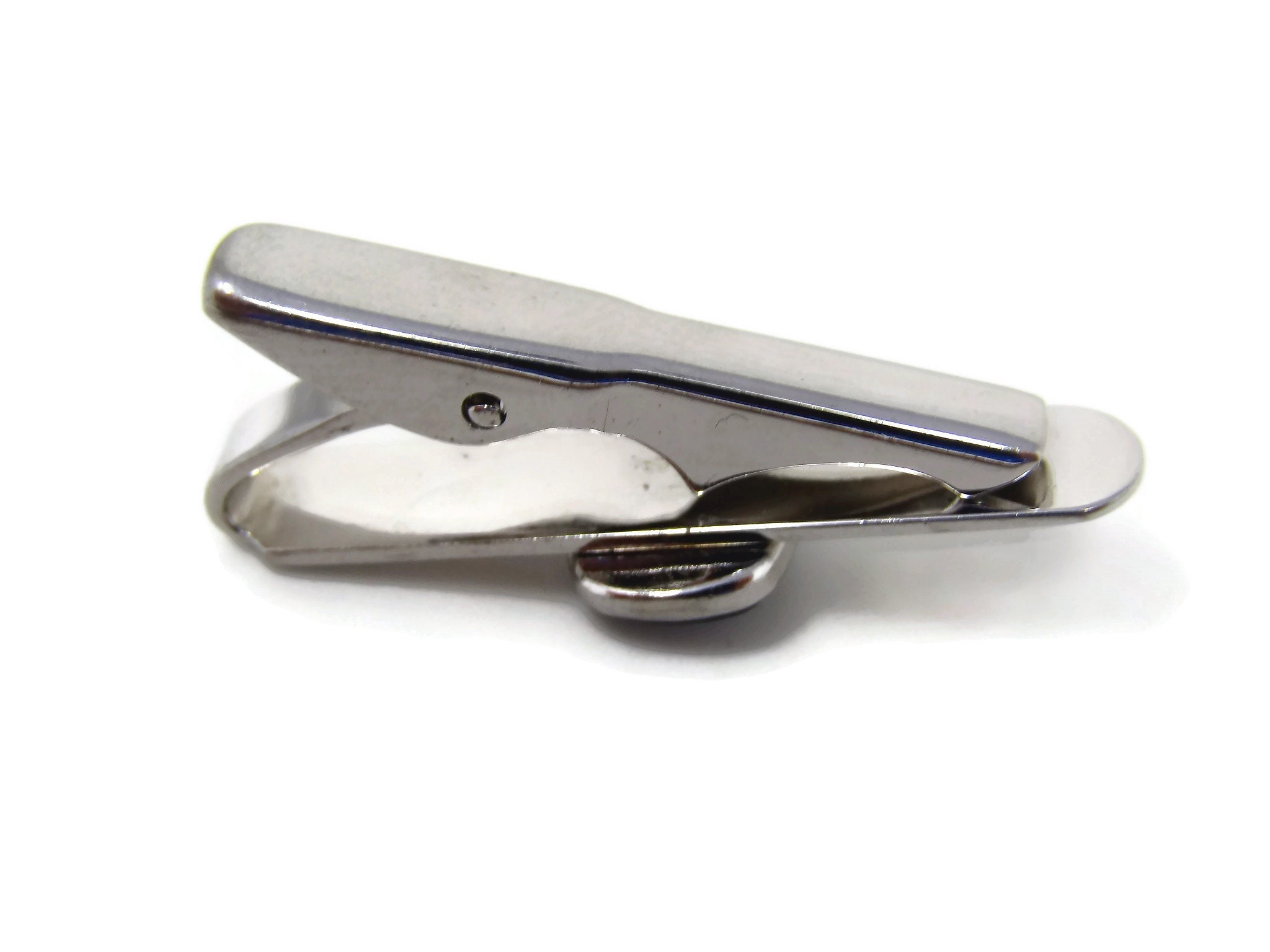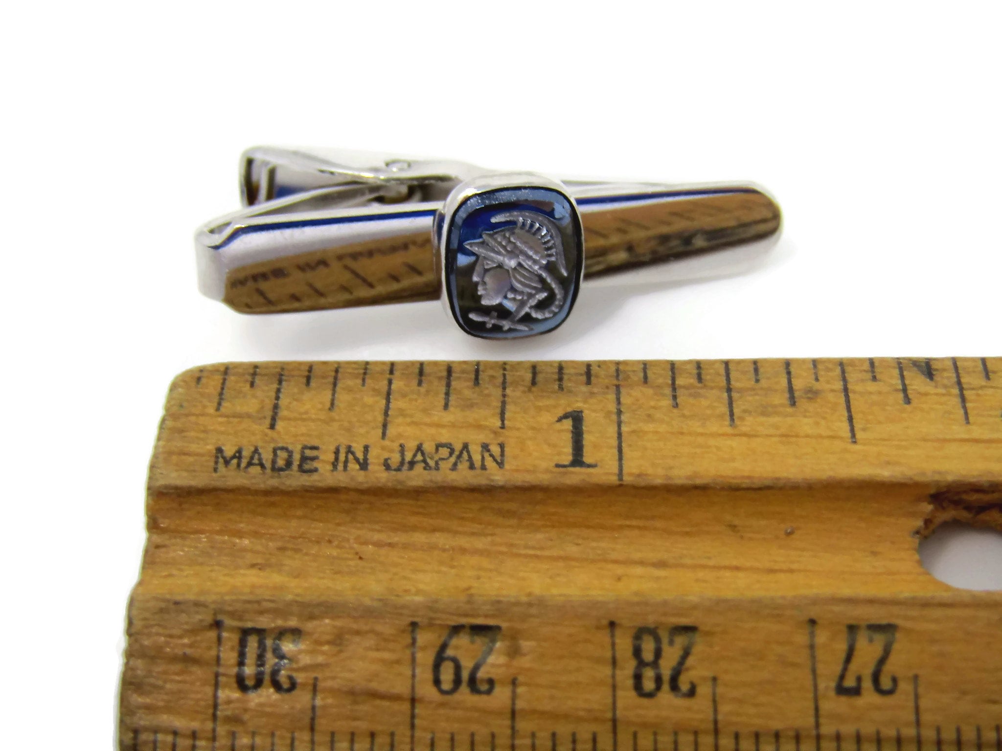 Vintage Tie Clip Tie Bar: Warrior Etched Hematite Center Silver Tone Smooth