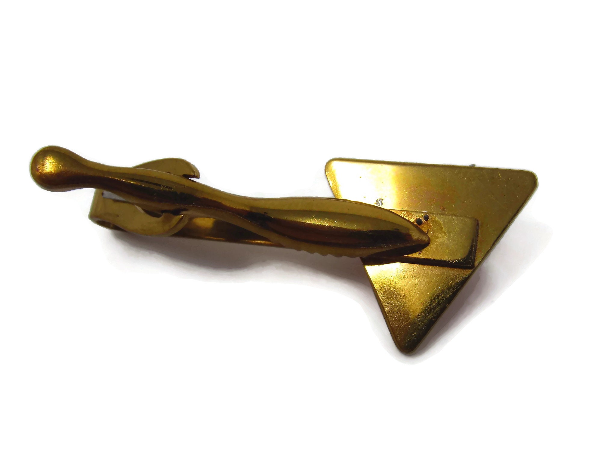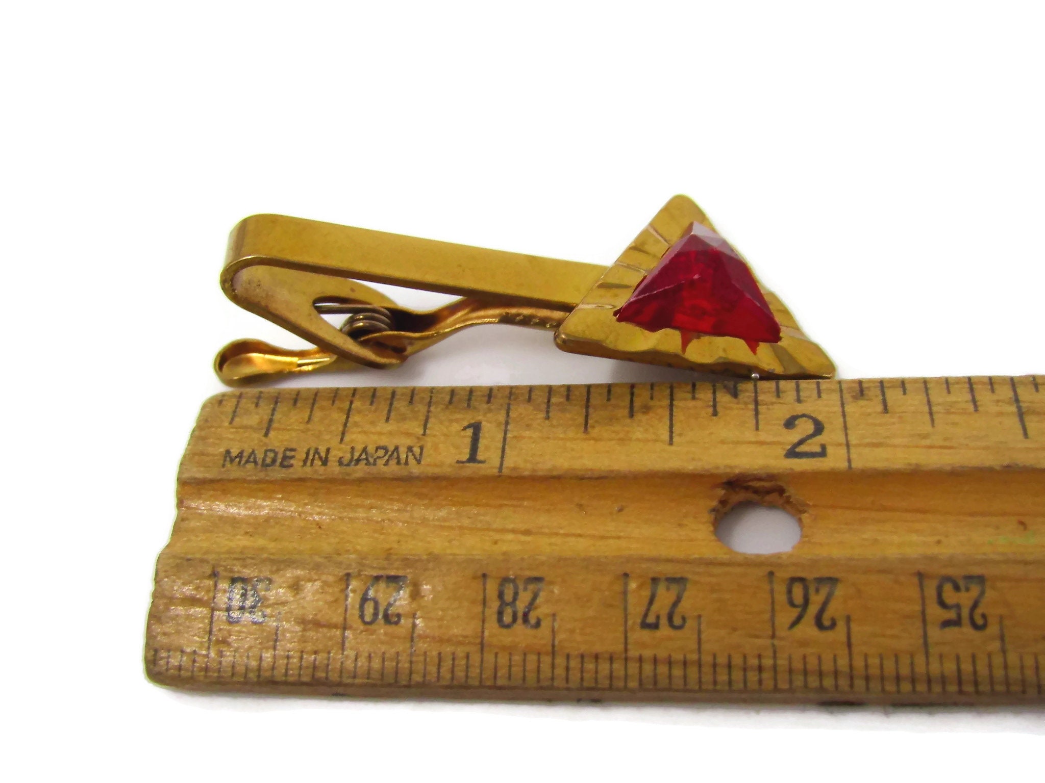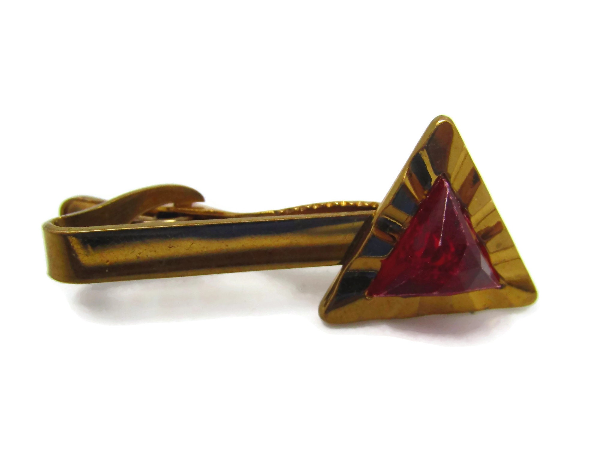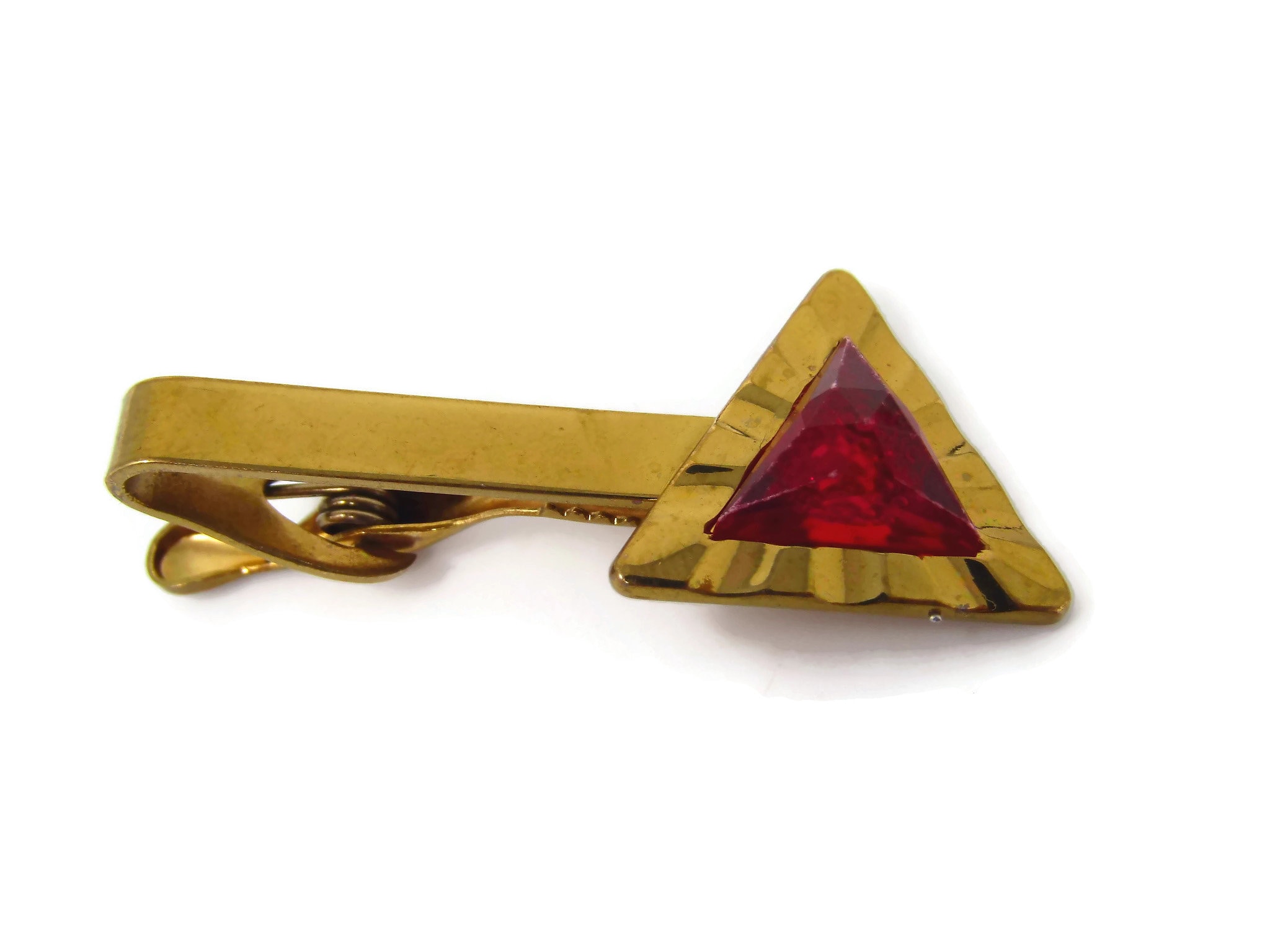Vintage Tie Clip Tie Bar: Red Triangle Crimped Border Design