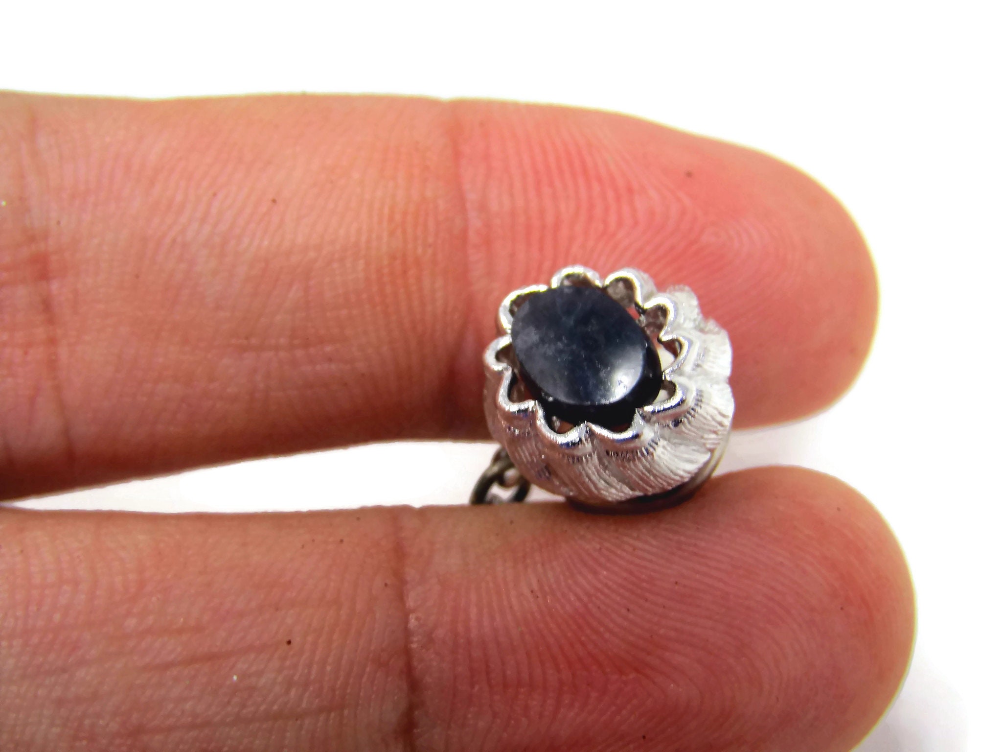 Vintage Tie Tack Tie Pin: Black Center Silver Tone Beautiful Setting