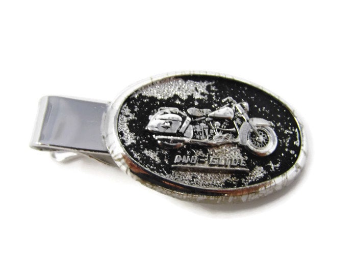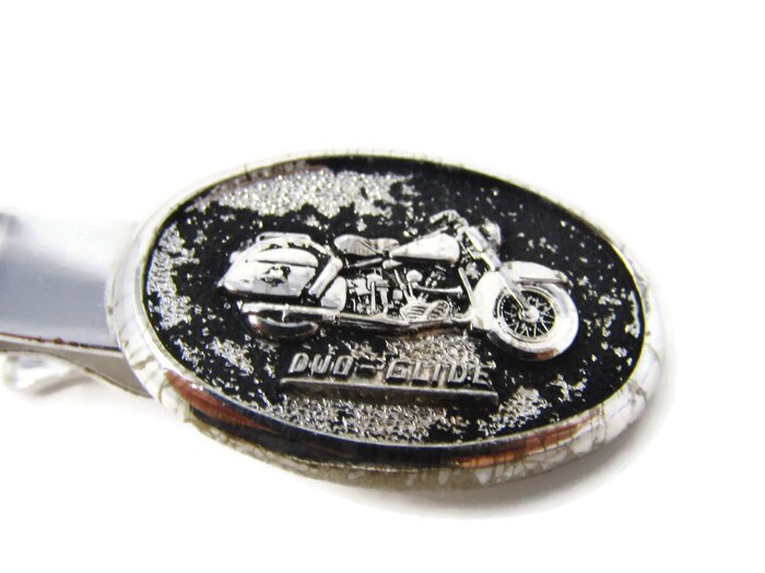 Harley Davidson Tie Clip Vintage Tie Bar: Duo Glide Motorcycle Silver Tone
