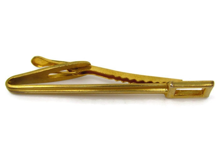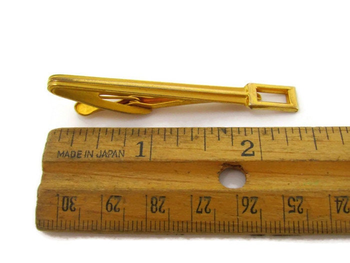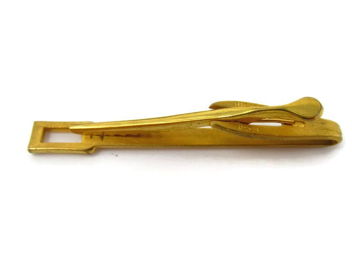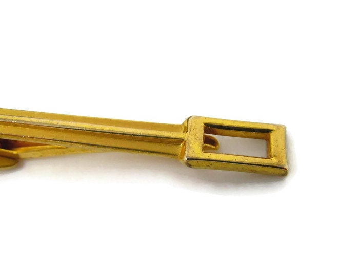 Modernist Open Rectangle Tie Clip Vintage Tie Bar: Gold Tone Made in USA