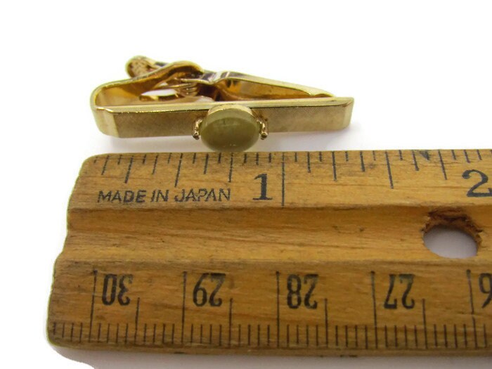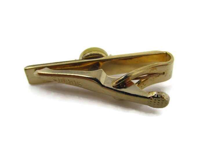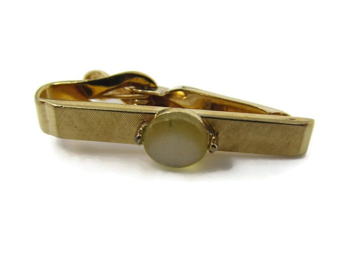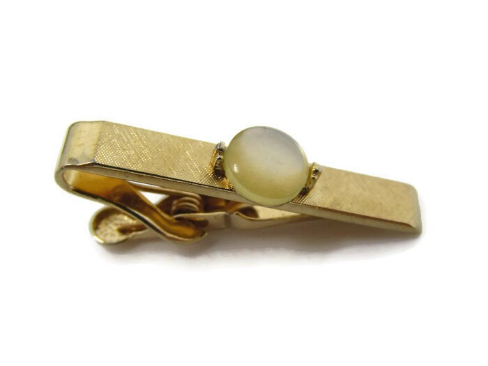 Opalescent White Accent Tie Clip Vintage Tie Bar: Textured Gold Tone