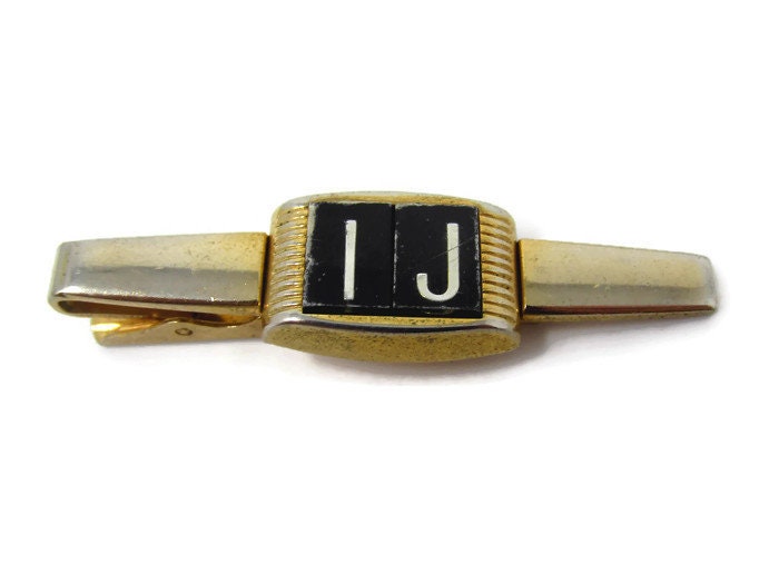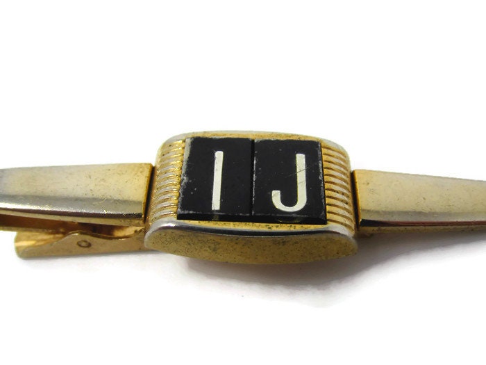 IJ Tie Clip Vintage Tie Bar: Letter Initials "IJ" Art Deco Style