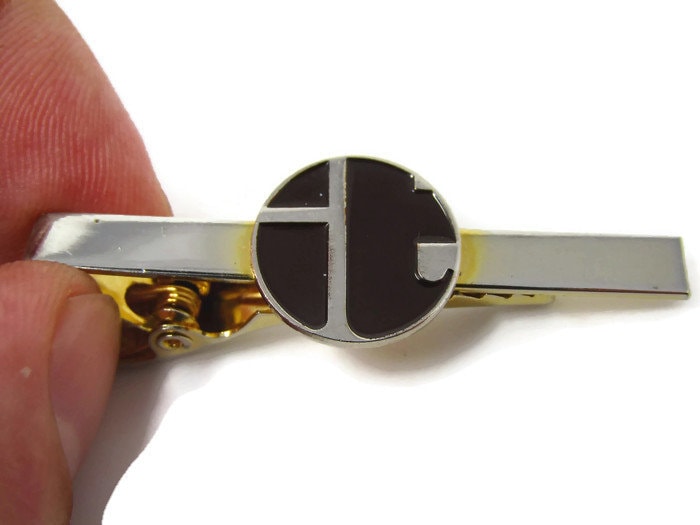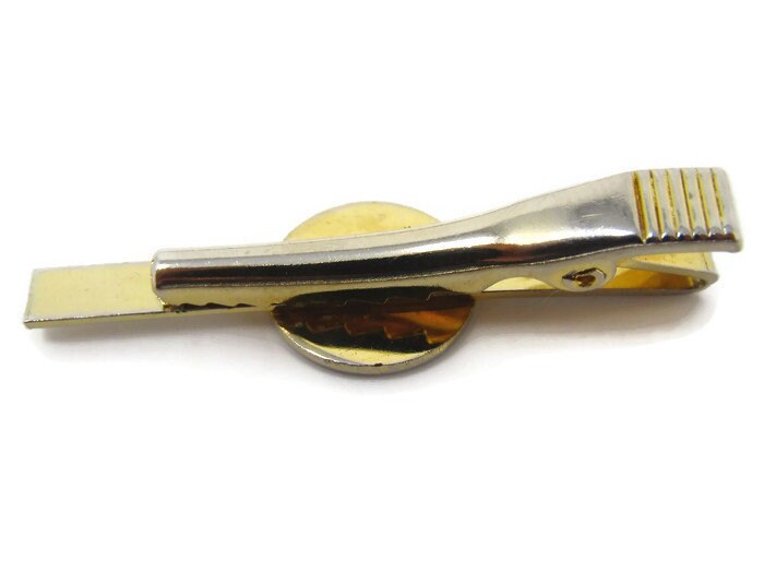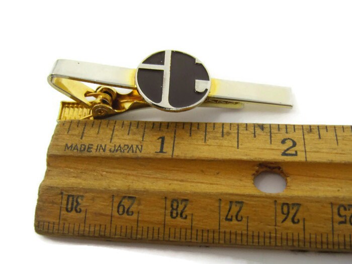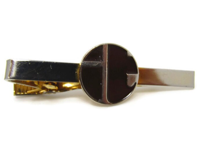 Brown Modernist Art Center Tie Clip Vintage Tie Bar: Nice Design Gold Tone