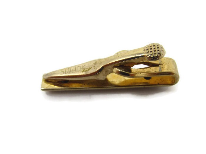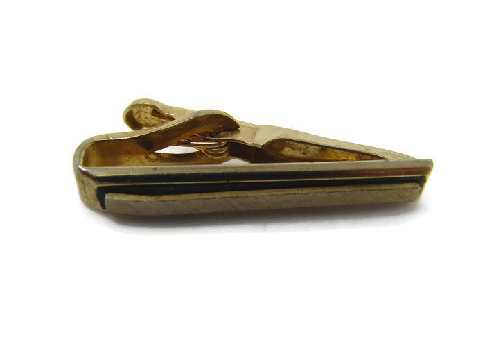 Textured Center Tie Clip Vintage Tie Bar: Gold Tone