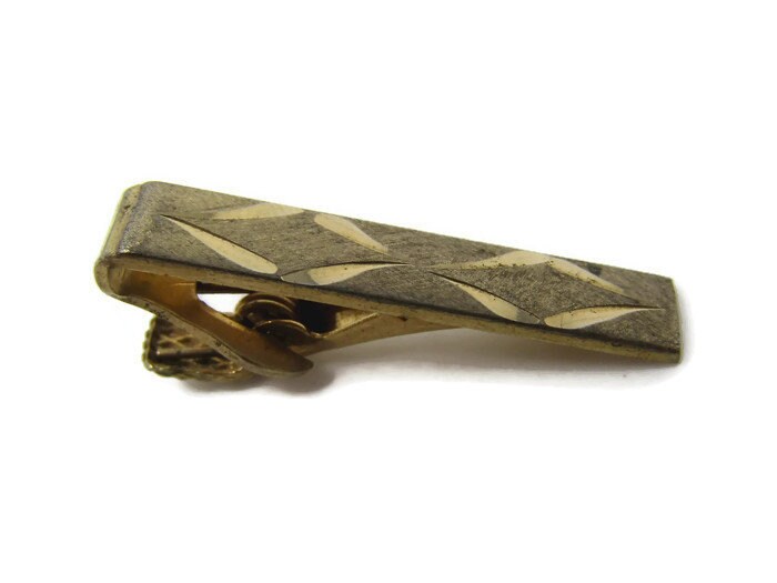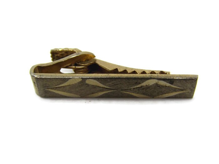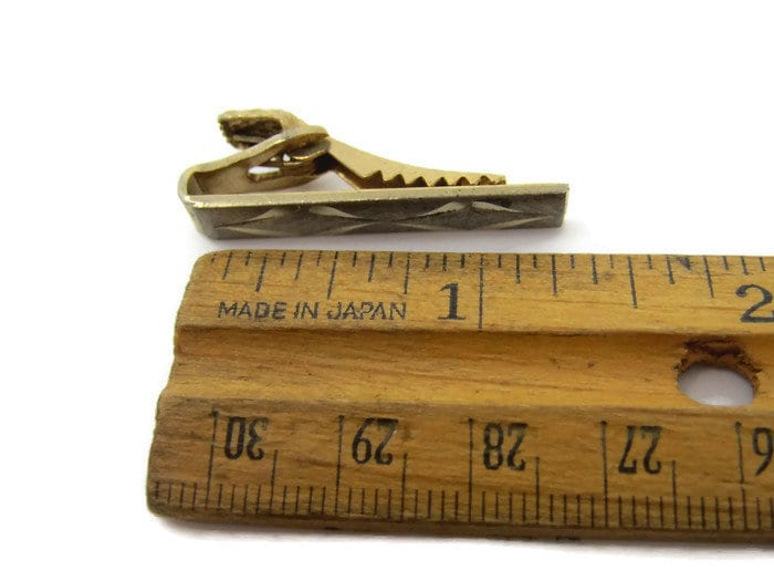 Interesting Etch Tie Clip Vintage Tie Bar: Gold Tone