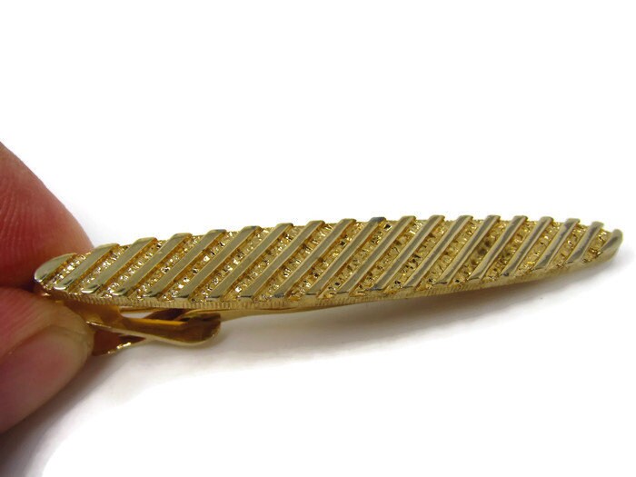 Bold Striped Tie Clip Vintage Tie Bar: Gold Tone