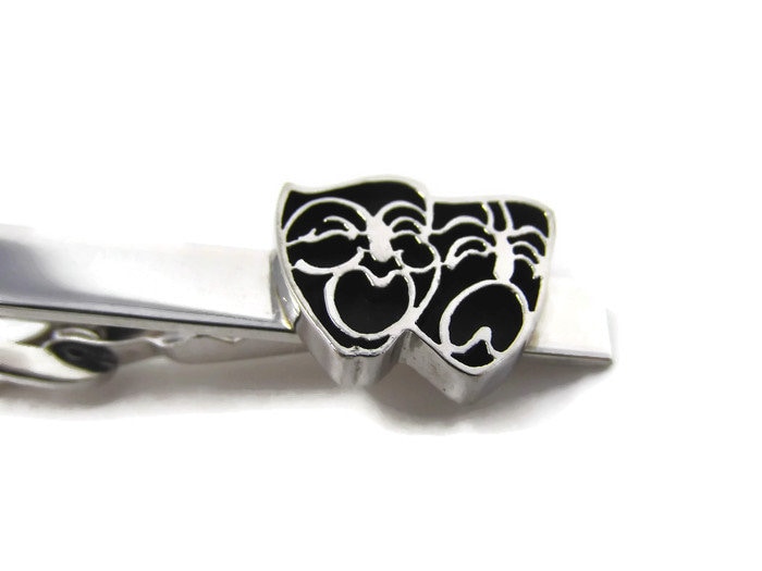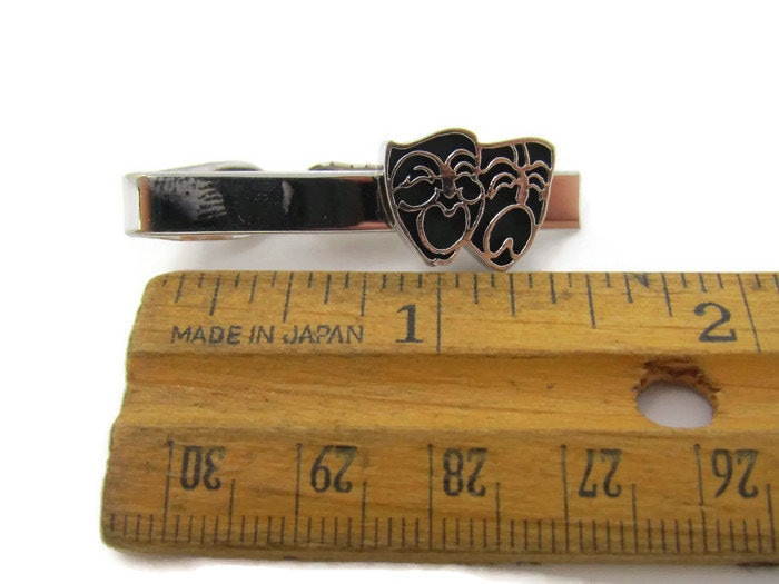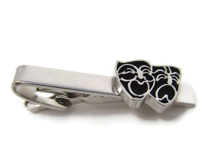 Comedy Tragedy Masks Tie Clip Vintage Tie Bar: Actor's Gift Silver Tone