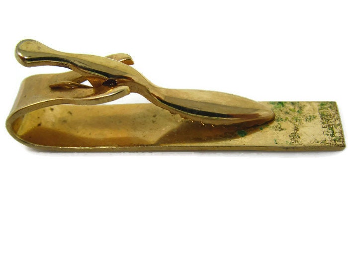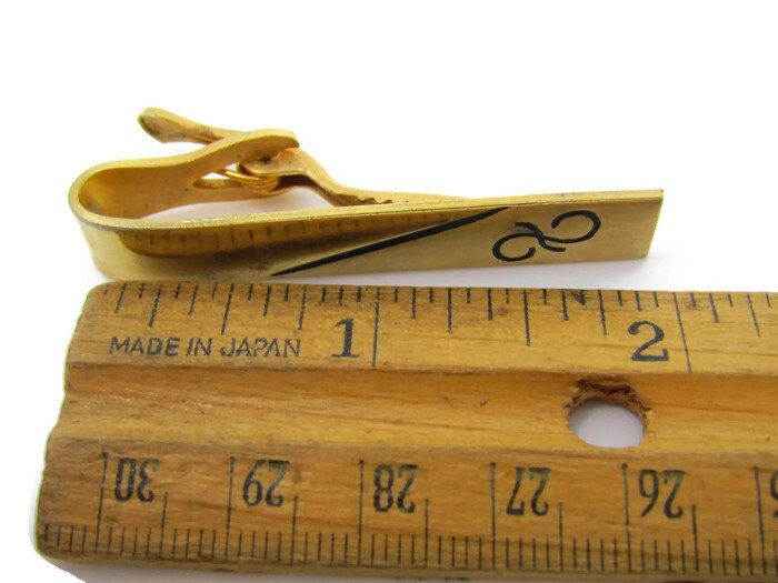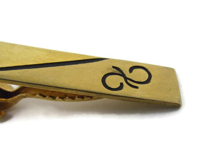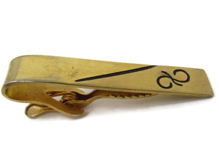 Black Swirl Accent Tie Clip Vintage Tie Bar: Gold Tone