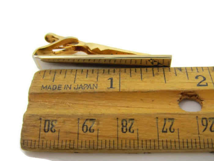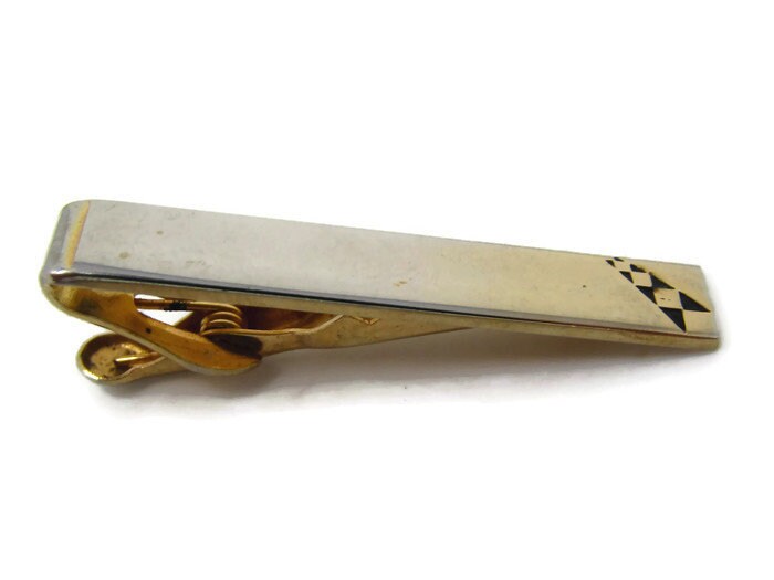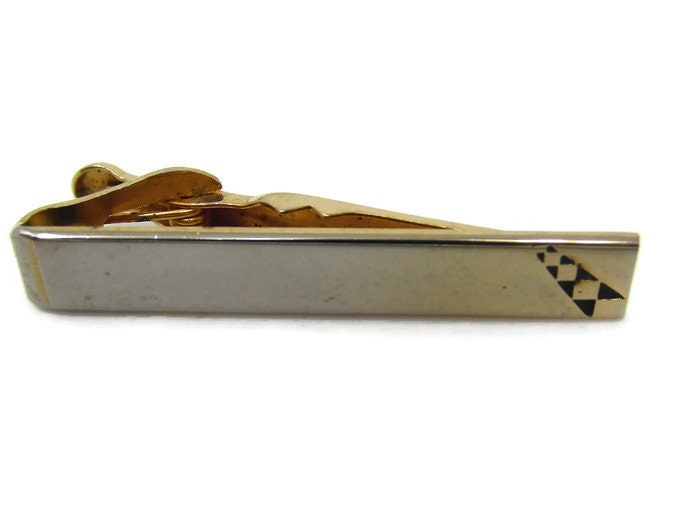 Checkered Stripe Tie Clip Vintage Tie Bar: Gold Tone