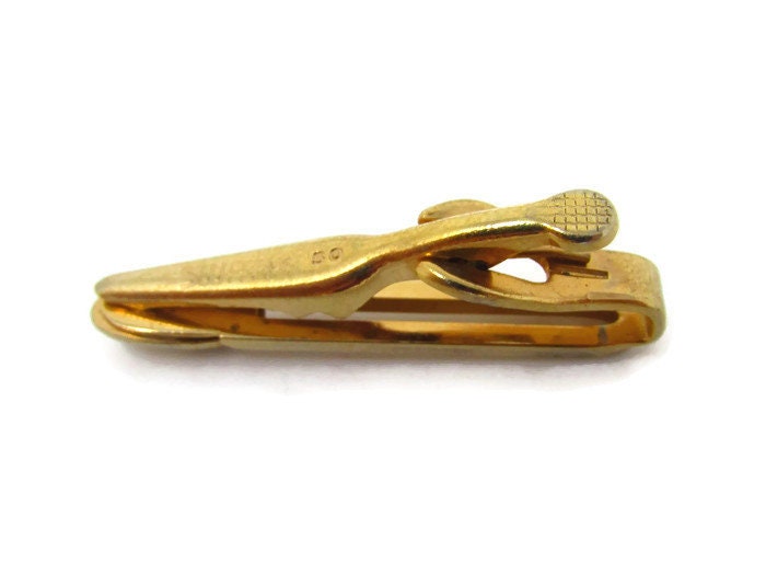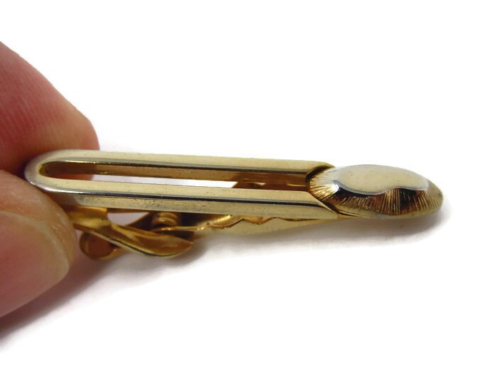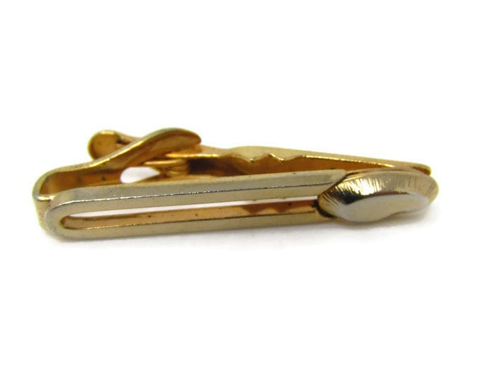 Modernist Art Accent Tie Clip Vintage Tie Bar: Gold Tone Open Body
