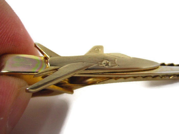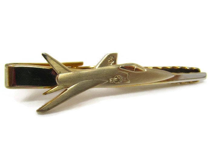 Military Jet Tie Clip Vintage Tie Bar: Gold Tone High Quality