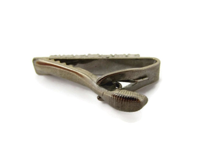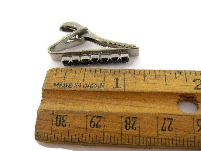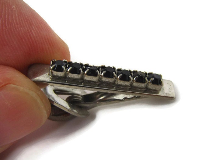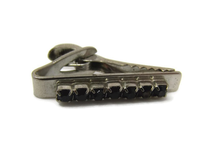 Black Jewels Row Tie Clip Vintage Tie Bar: Silver Tone