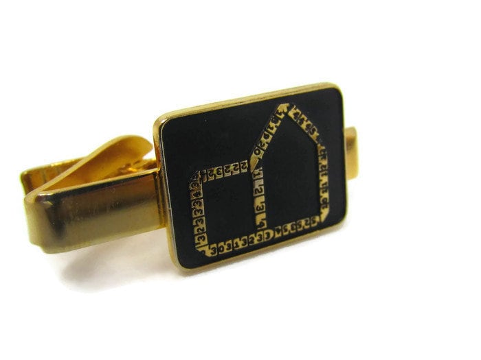 Ruler House Tie Clip Vintage Tie Bar: Gold Tone