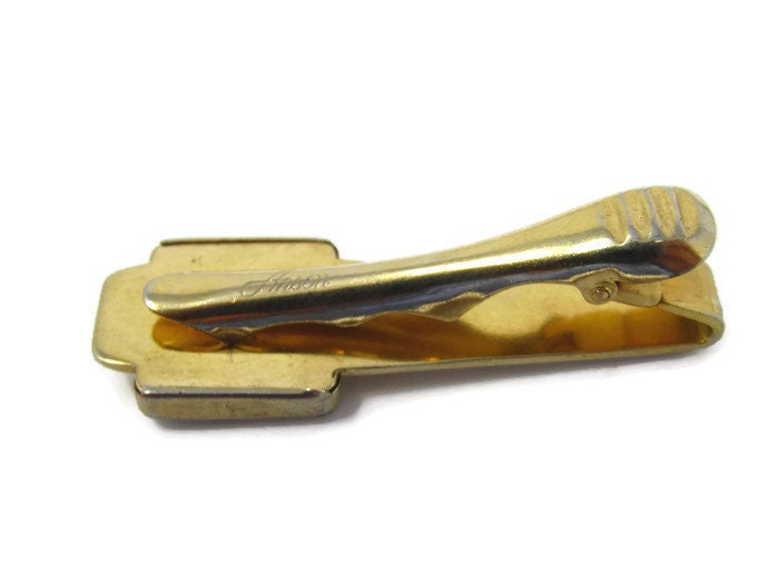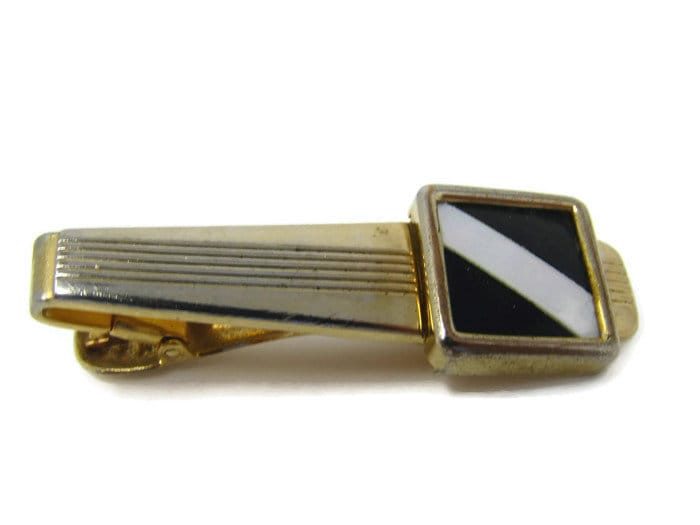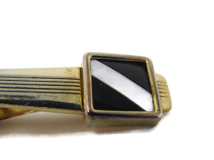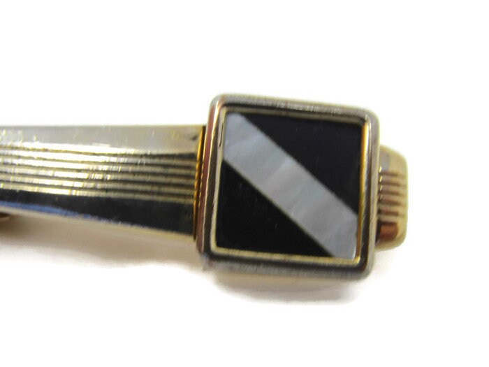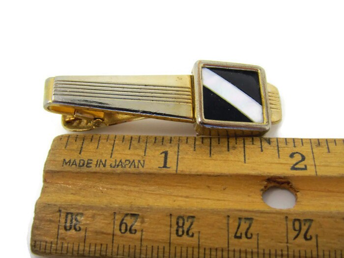 Art Deco Mother of Pearl Stripe Tie Clip Vintage Tie Bar: Gold Tone