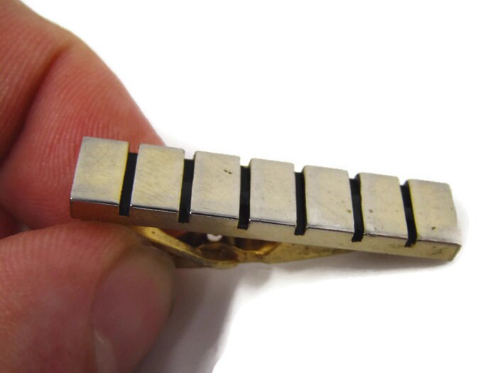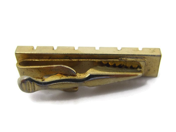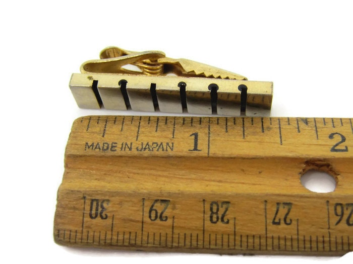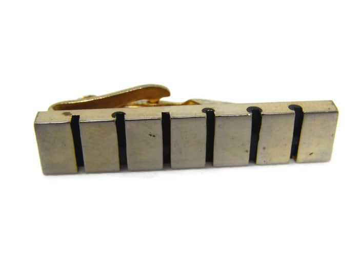 Modernist Vertical Stripes Tie Clip Vintage Tie Bar: Gold Tone