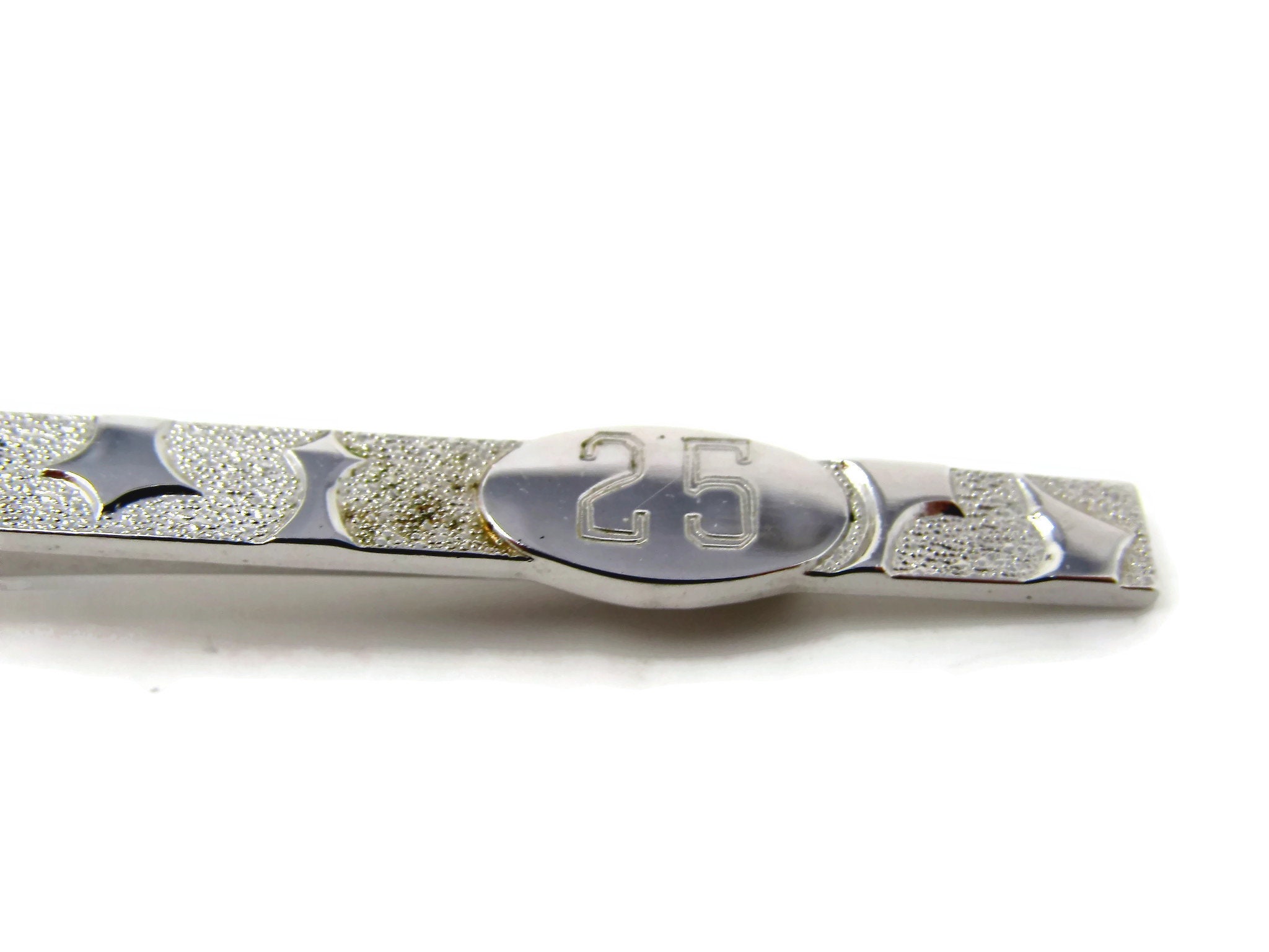 Vintage Tie Bar Clip: 25 Number Etch Modernist Body Design Silver Tone
