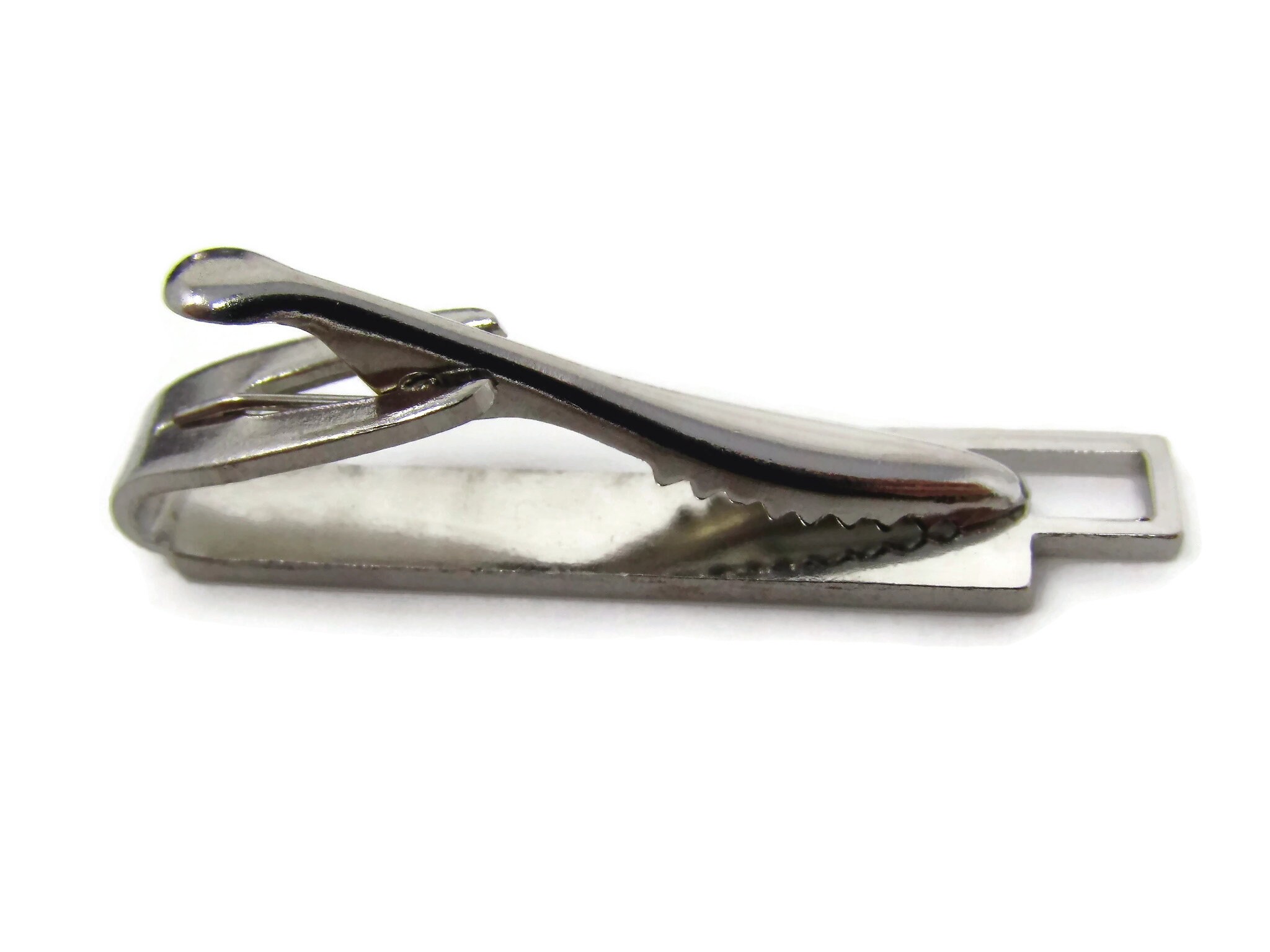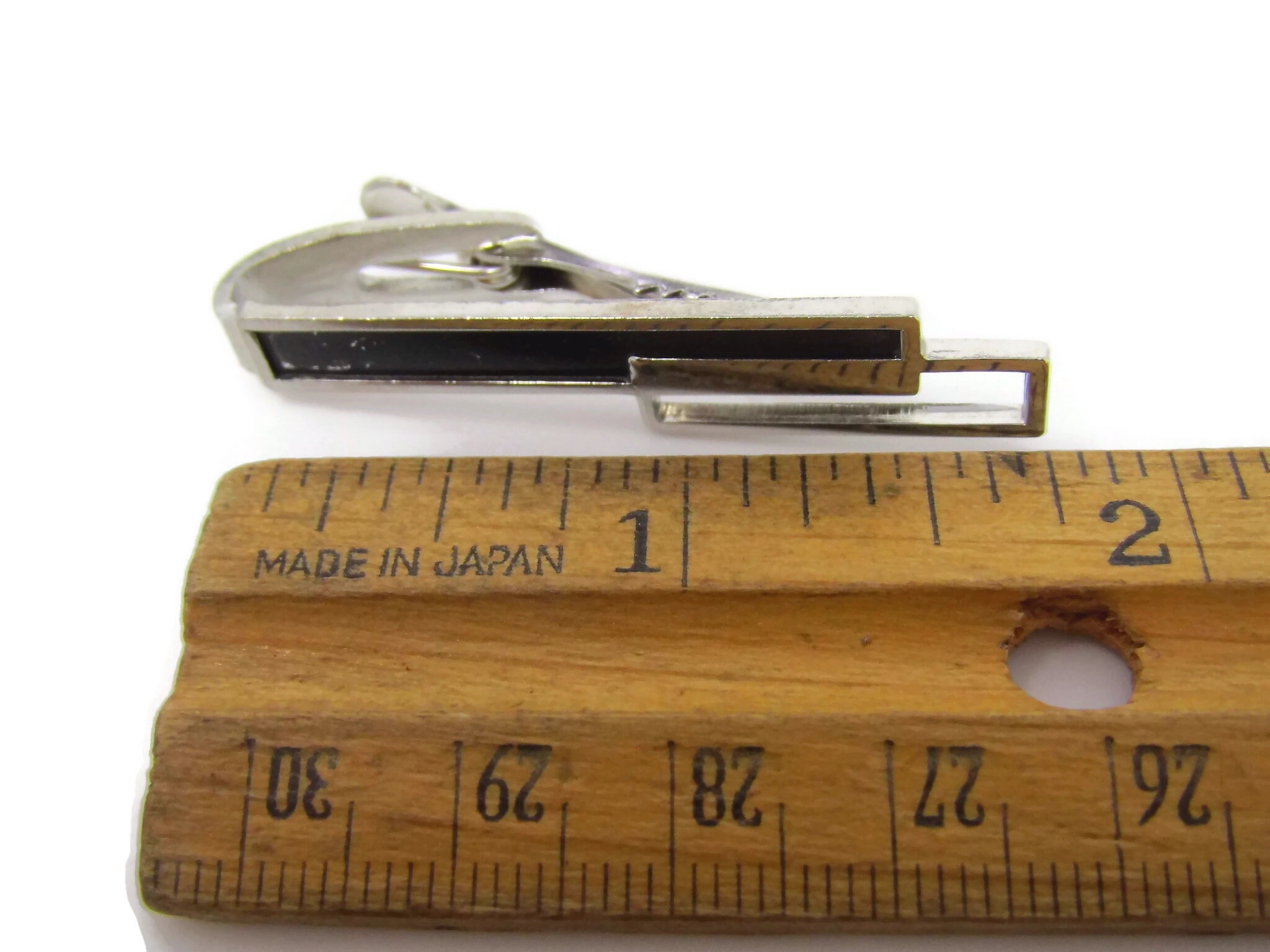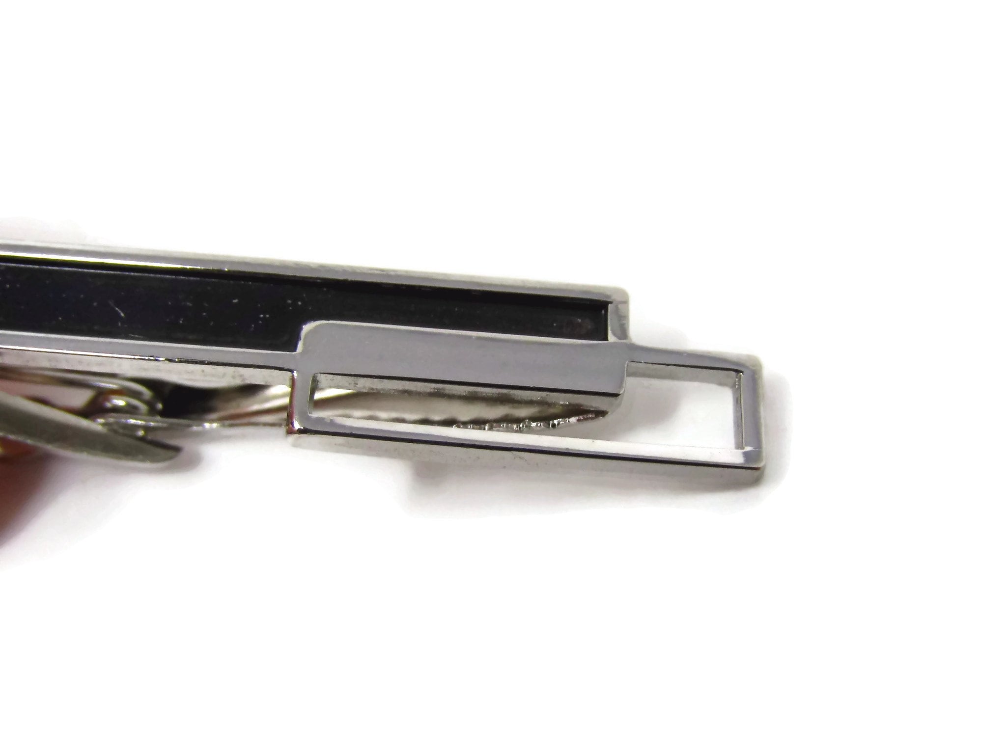 Vintage Tie Bar Clip: Modernist Black & Silver Tone Design Overlapping Rectangles