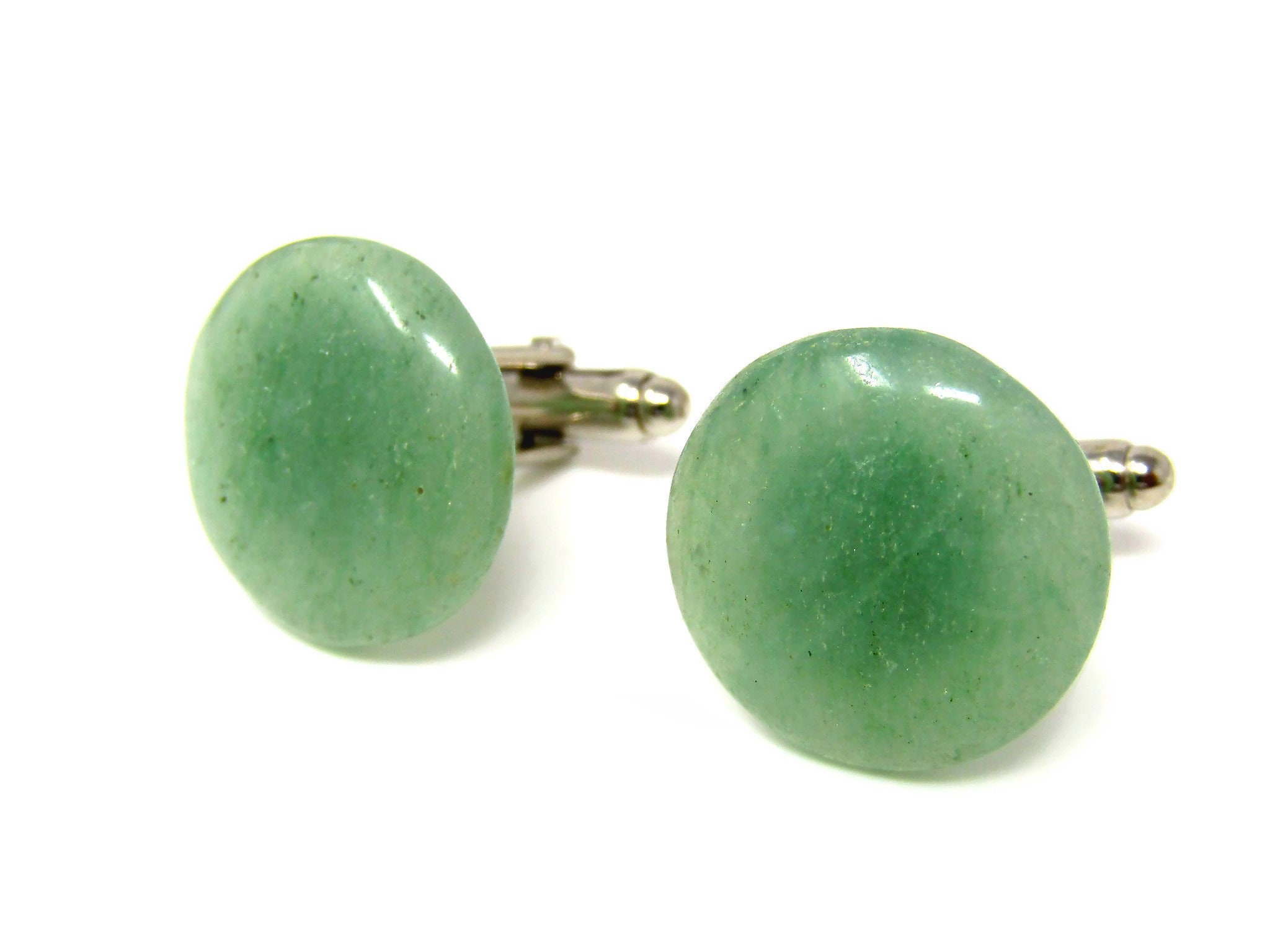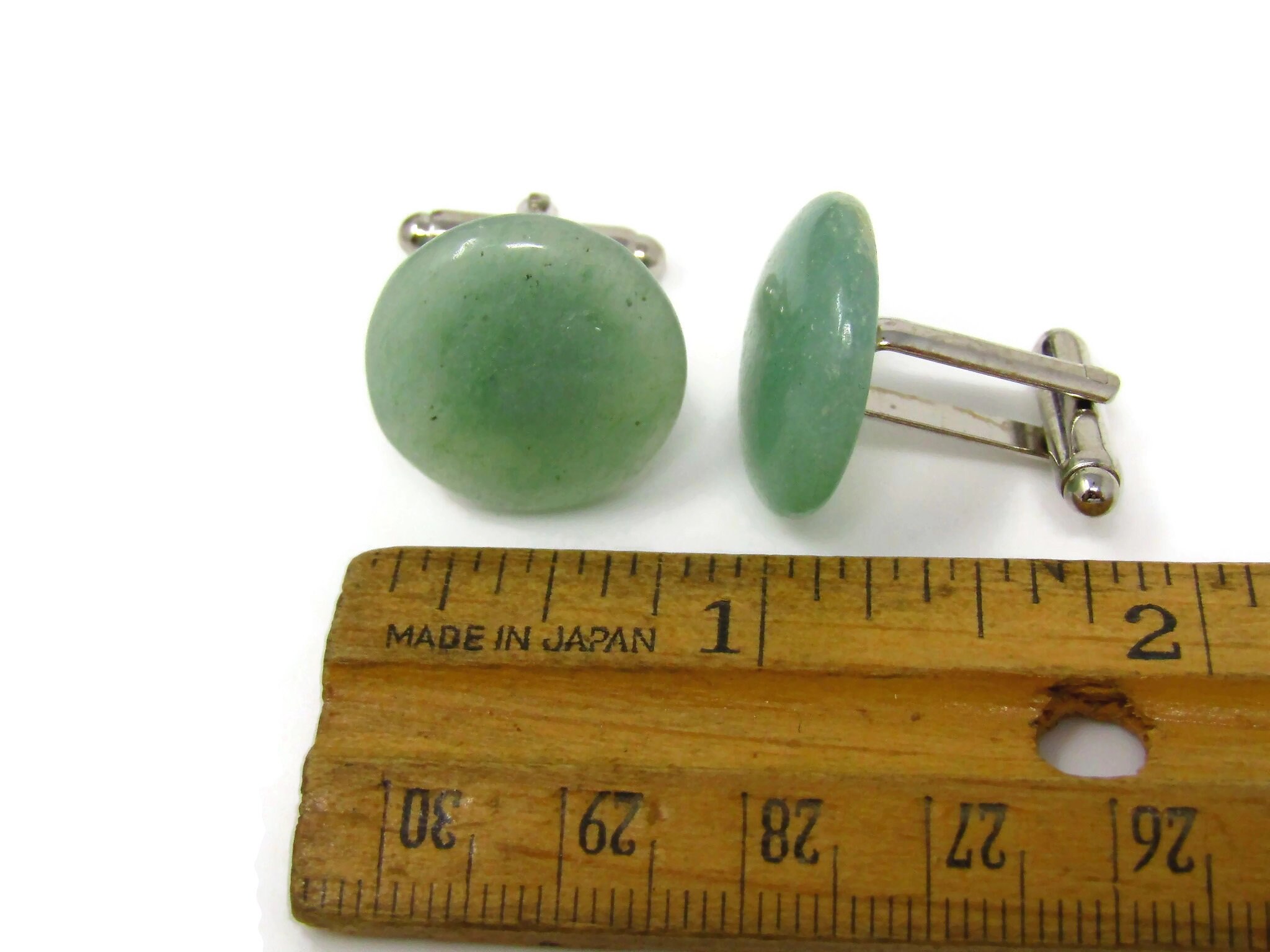 Green Glass Vintage Cufflinks Nice Color Round Design