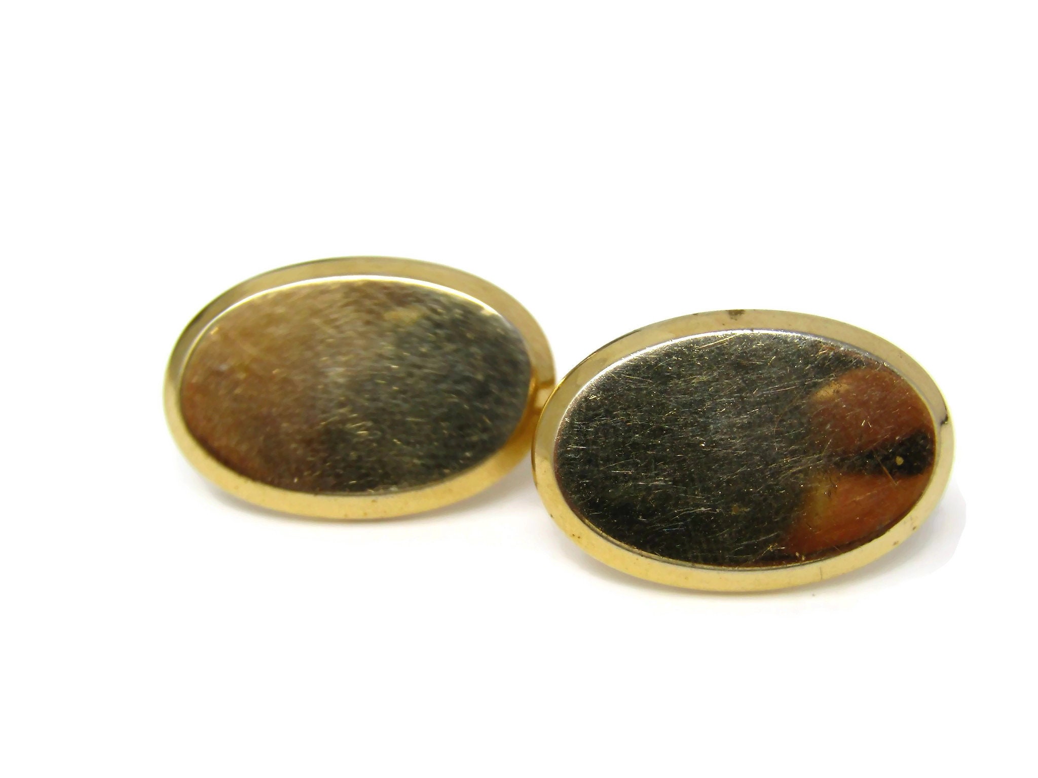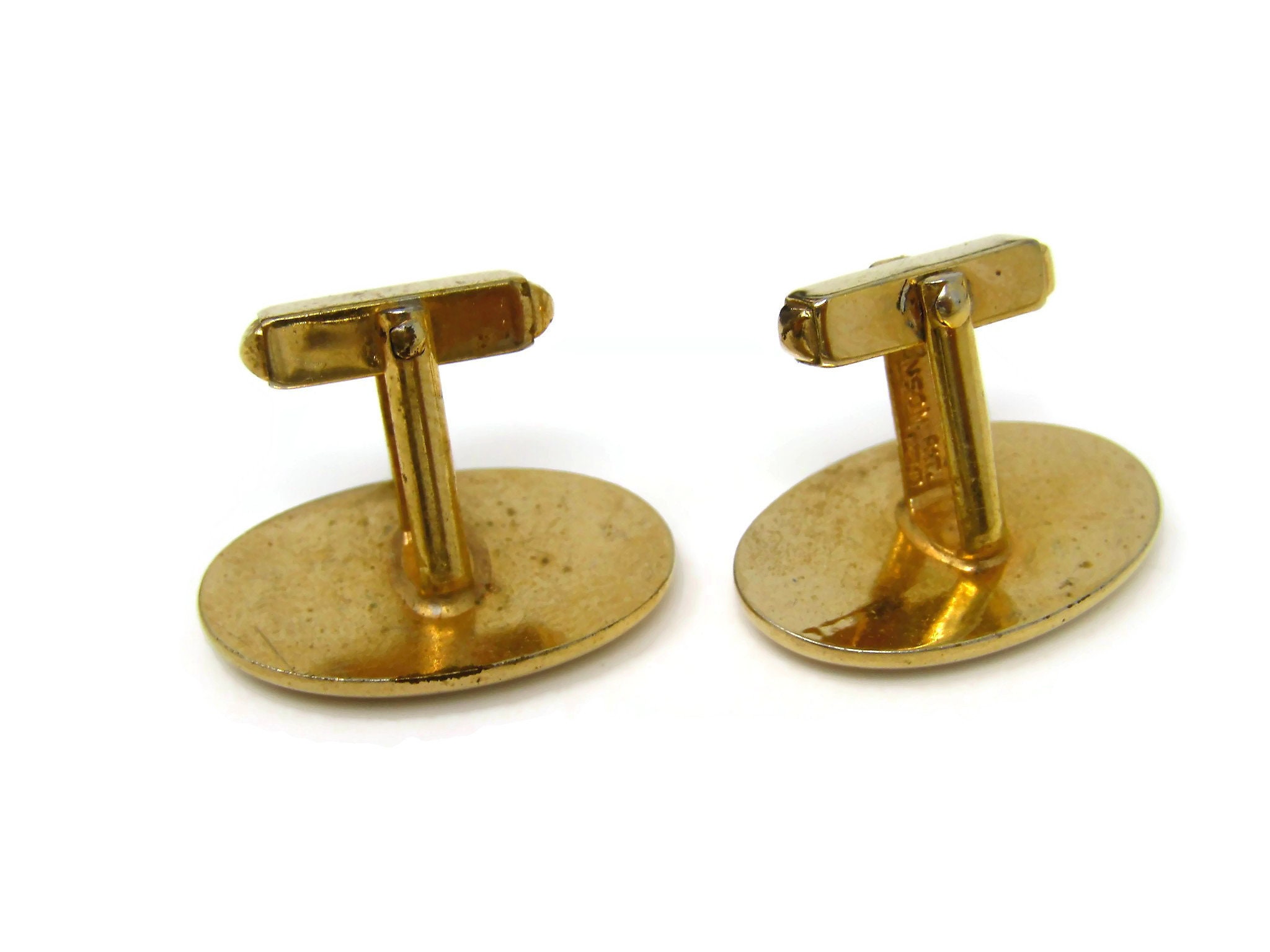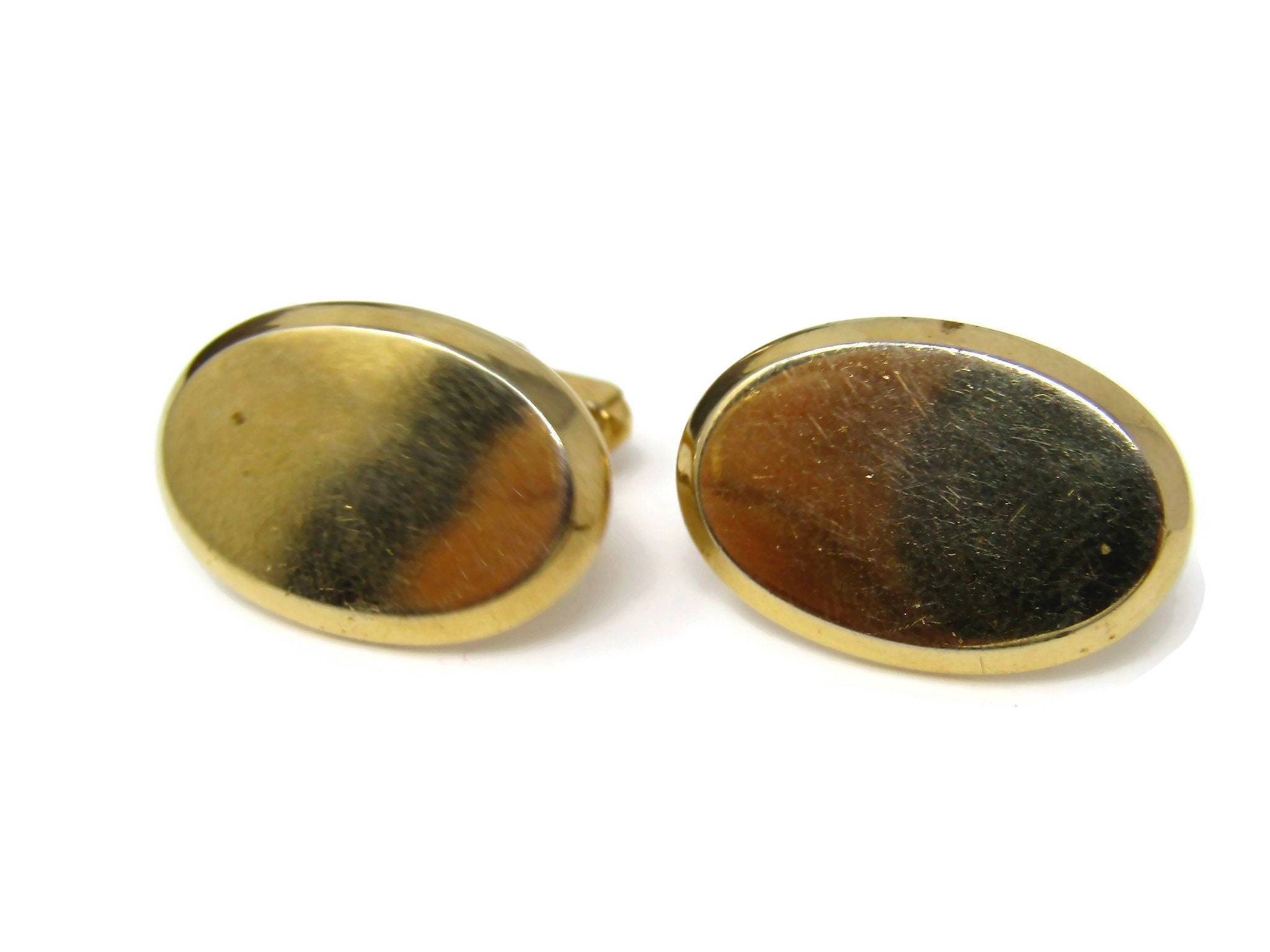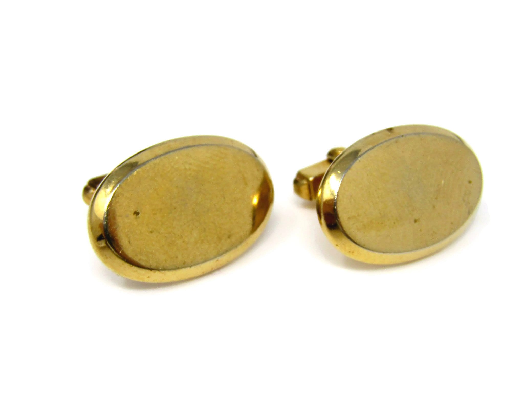 Vintage Cufflinks for Men: Gold Tone Oval Beveled Edge Design