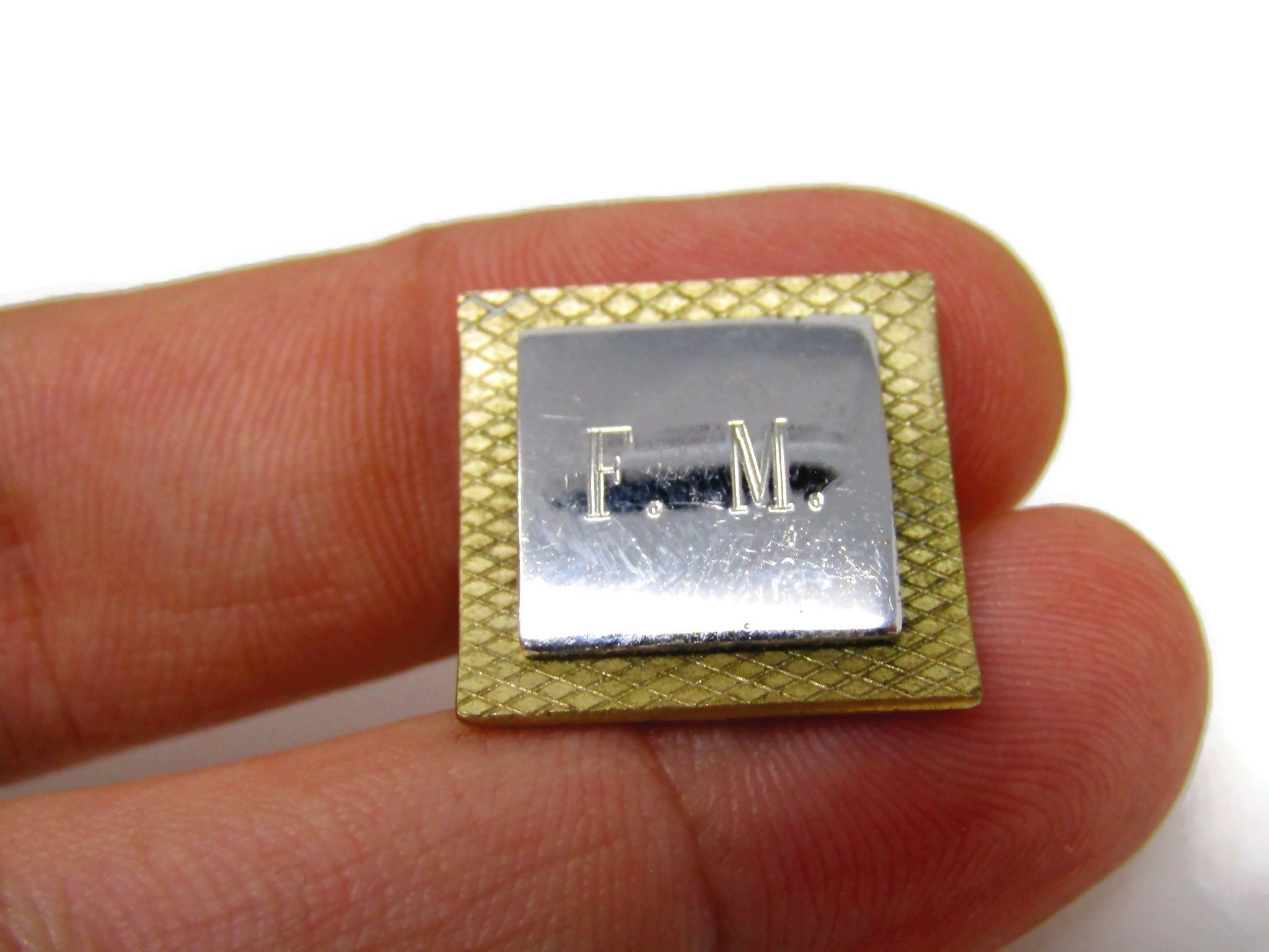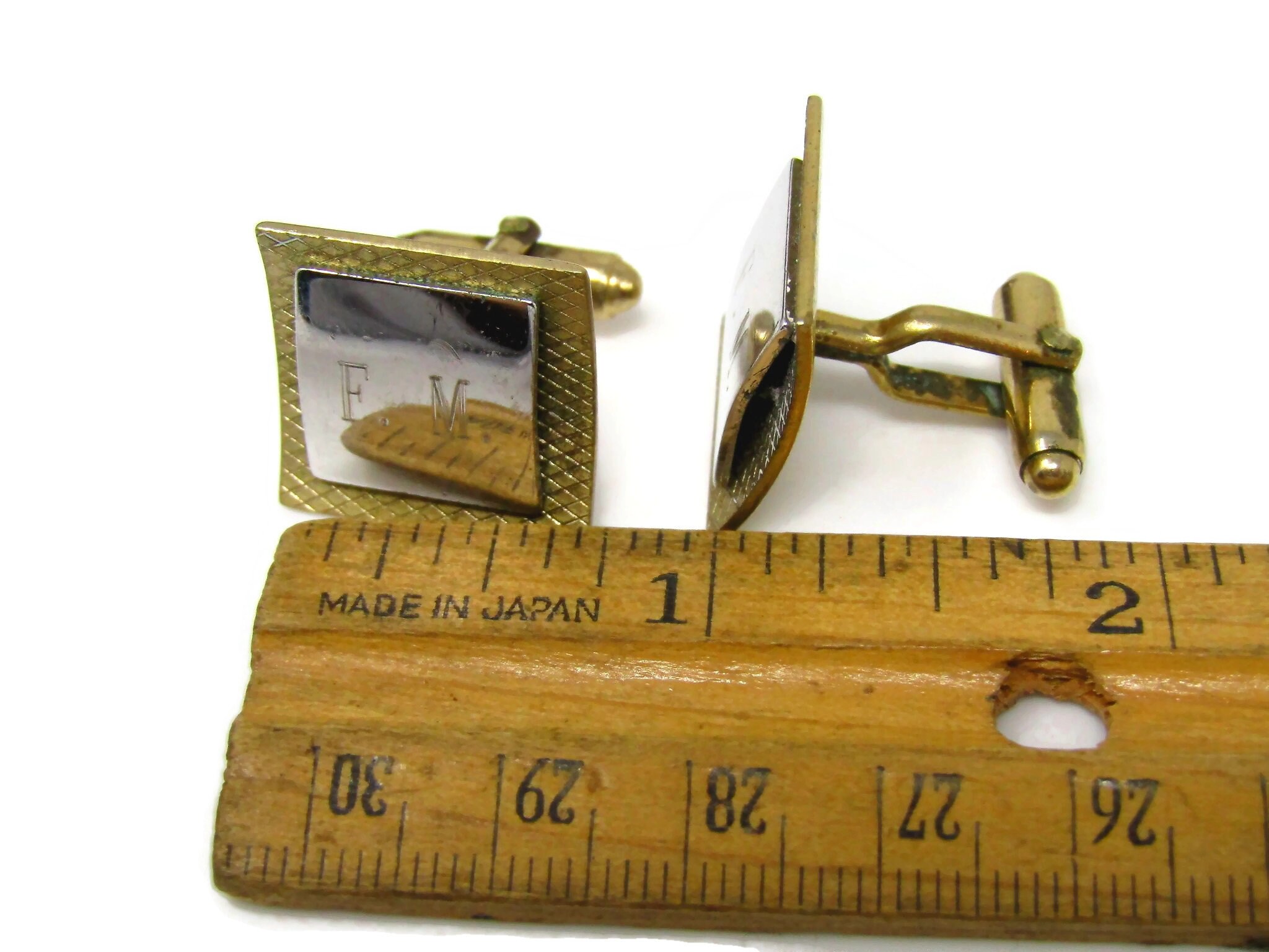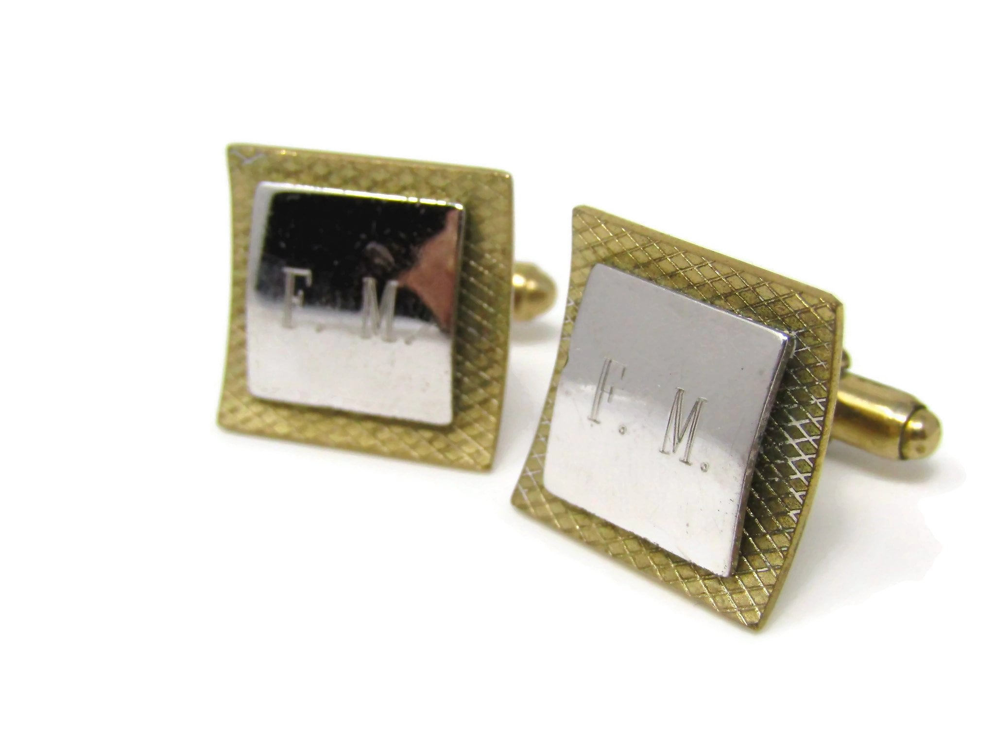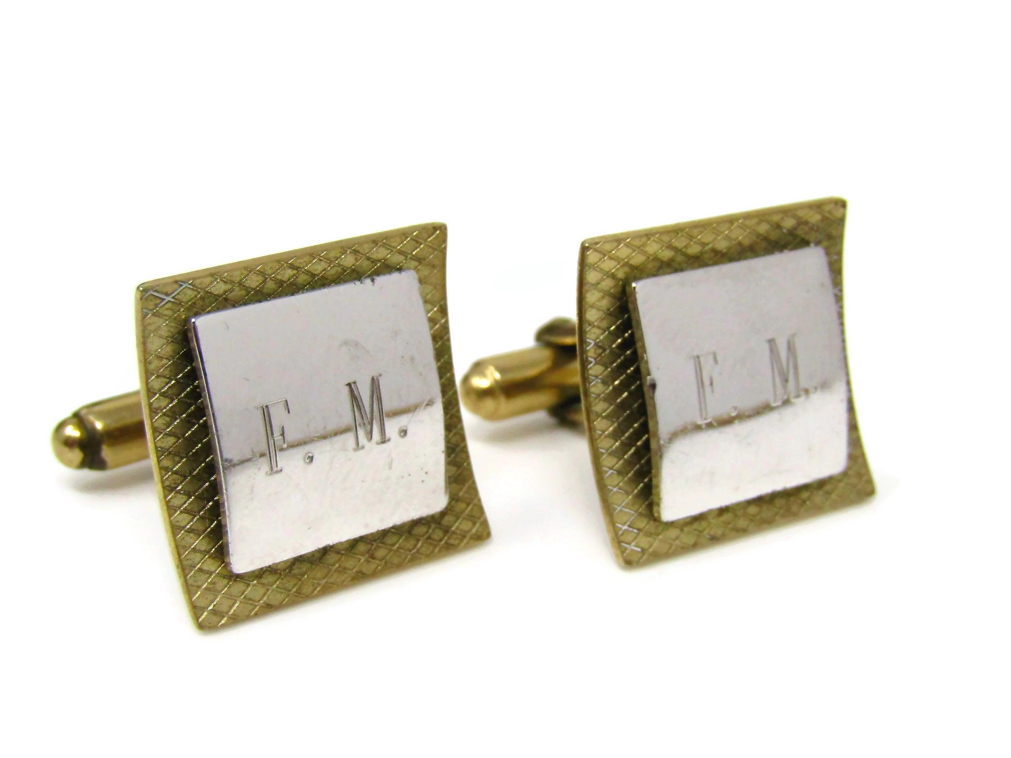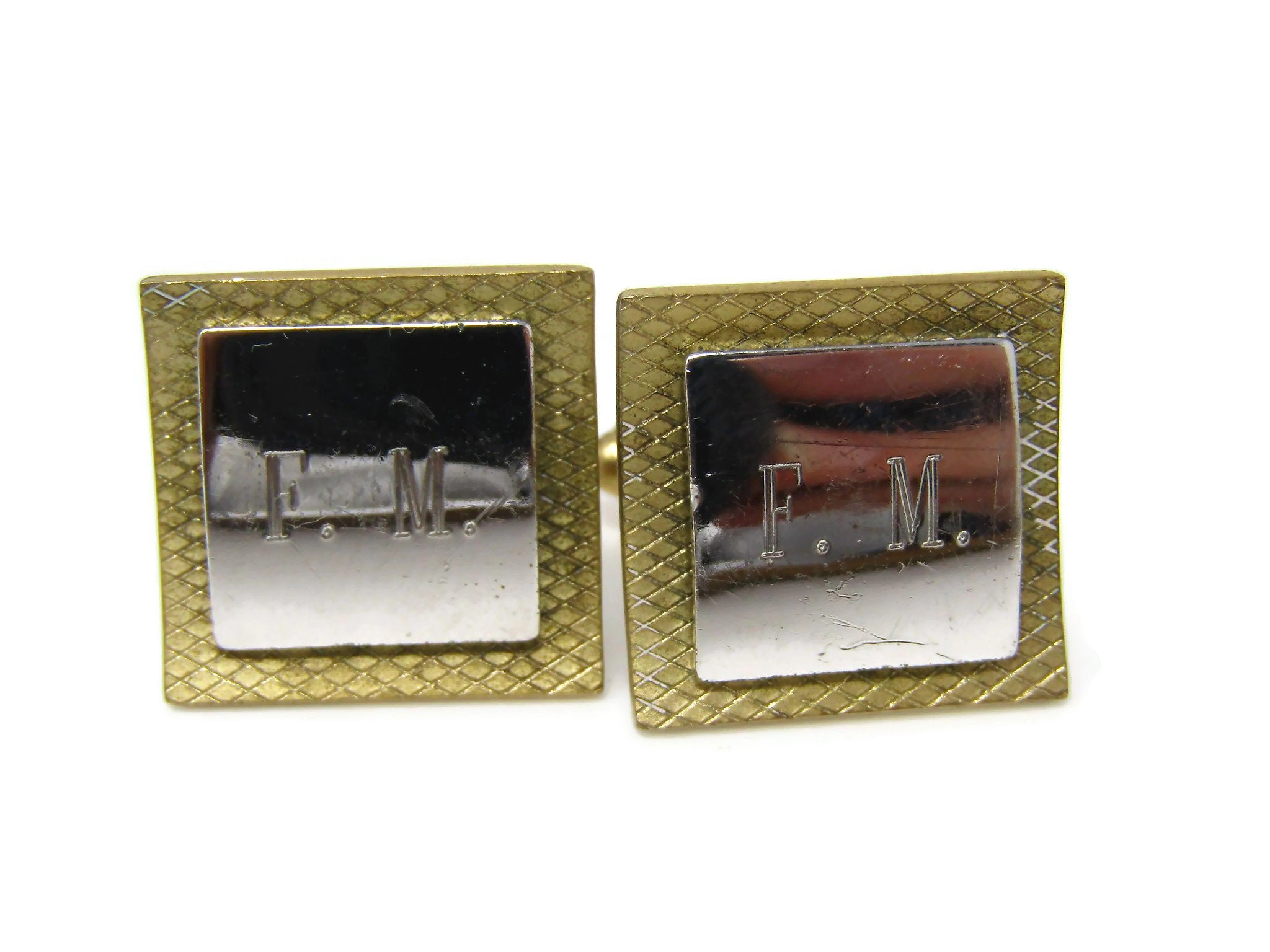 Vintage Cufflinks for Men: Letters F.M. FM Initials (Some Oxidation on Reverse)